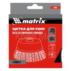 - Щетка для УШМ, 125 мм, М14, "чашка", латунированная витая проволока Matrix