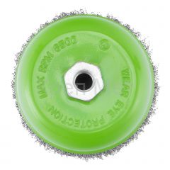 Щетка для УШМ Сибртех «чашка» 746067, М14, диаметром 125 мм, с щетиной из витой проволоки 0,3 мм, предназначена для постепенного снятия тонкого слоя материала с металлических, деревянных и пластиковых поверхностей. Удаляет ржавчину, загрязнения, а также остатки краски и других покрытий. Подходит для обработки участков значительной площади. Щетку устанавливают на вал углошлифовальной машины (УШМ), рекомендуемая максимальная скорость вращения 6500 об/мин. Работать с оснасткой следует в спецодежде.
