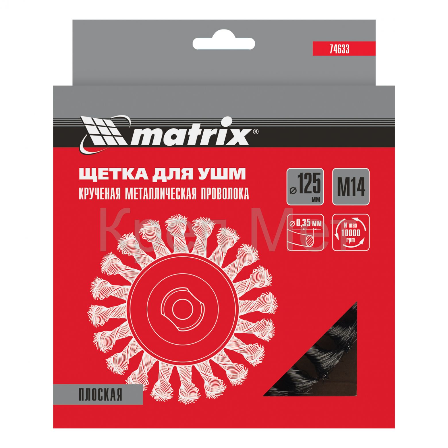 - Щетка для УШМ 125 мм, М14, плоская, крученая проволока 0.35 мм Matrix