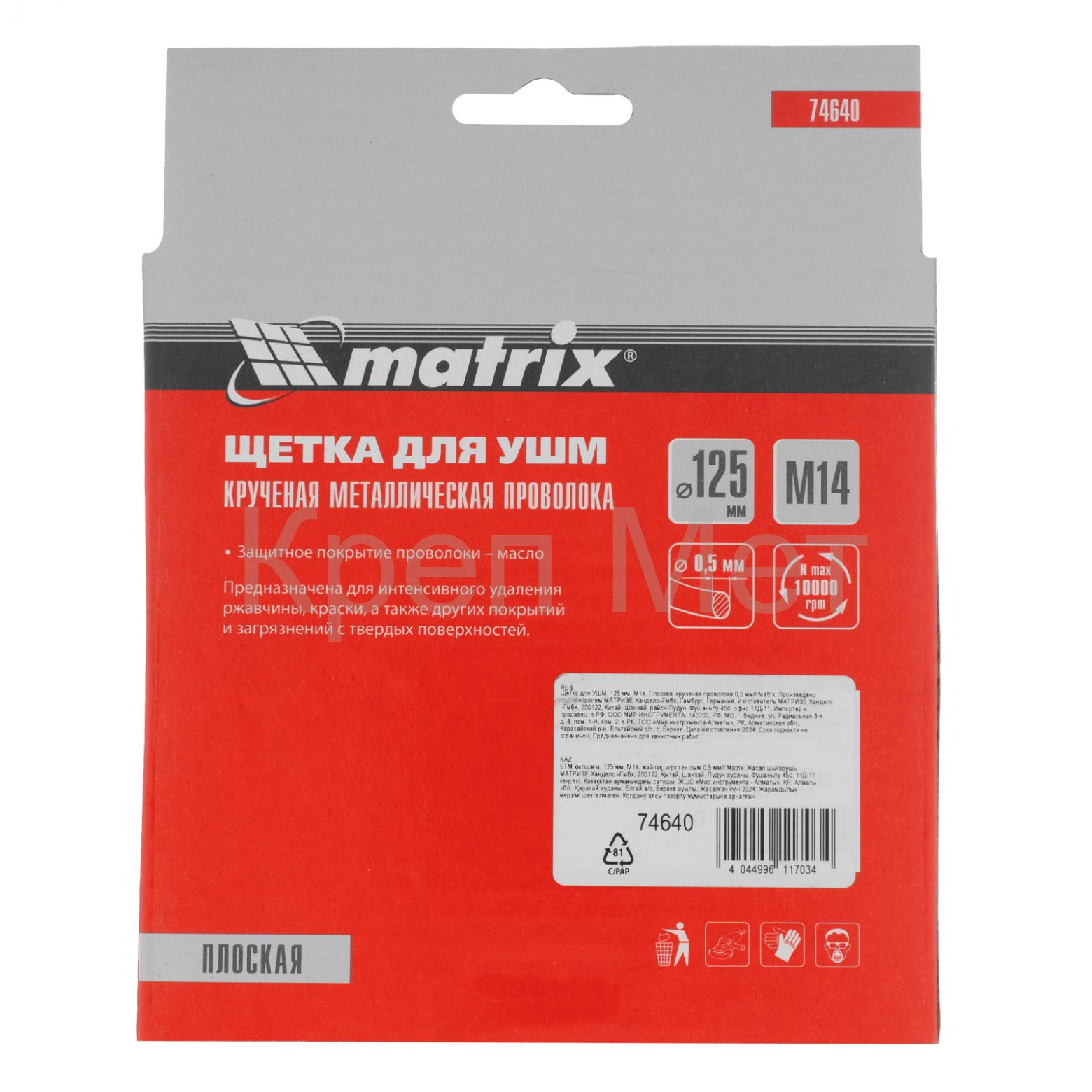 - Щетка для УШМ 125 мм, М14, плоская, крученая проволока 0.5 мм Matrix