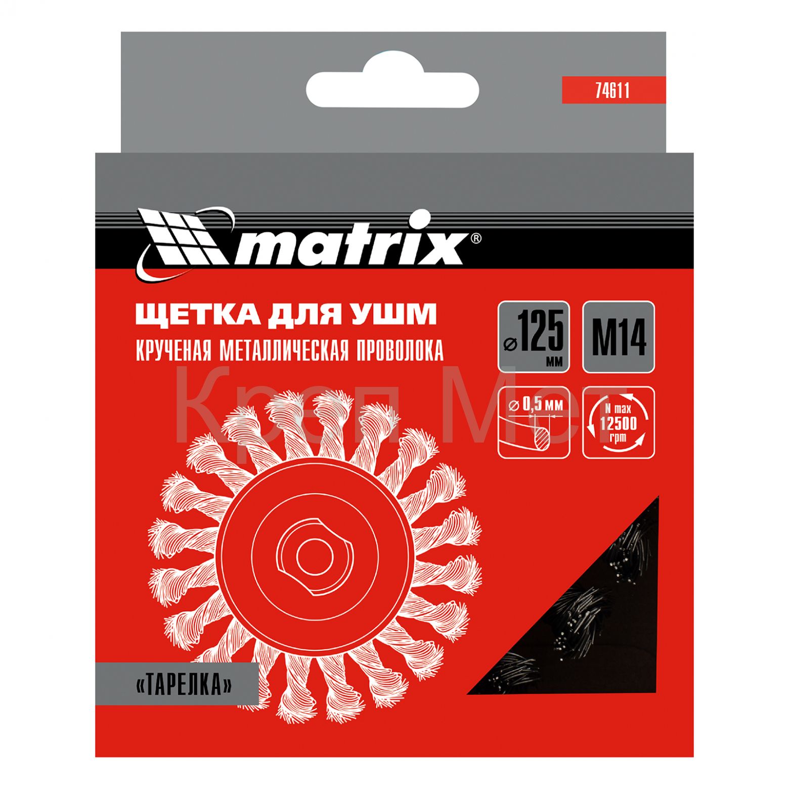 - Щетка для УШМ, 125 мм, М14, "тарелка", крученая проволока 0.5 мм Matrix