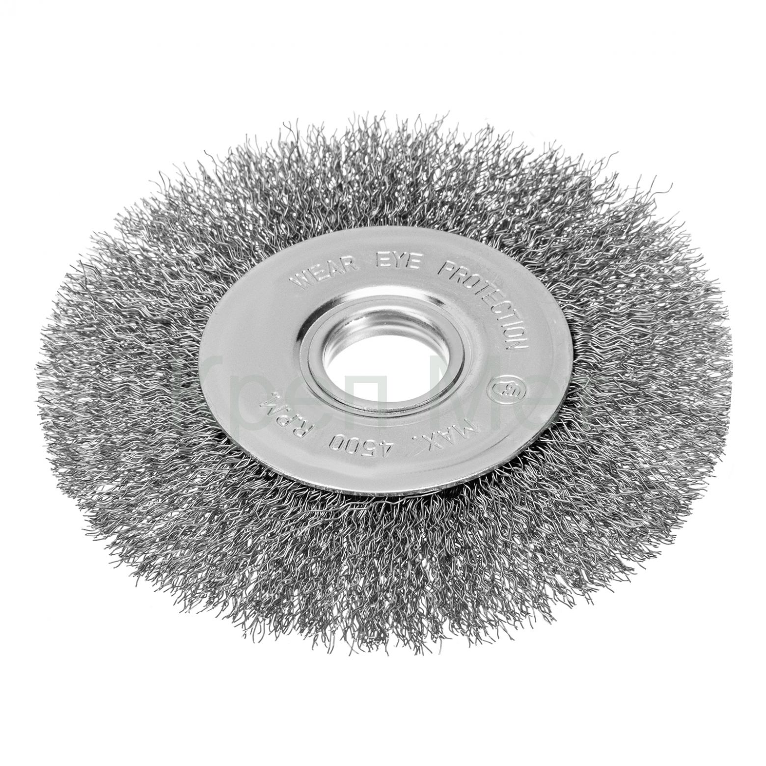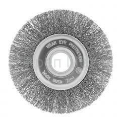 Плоская щетка для УШМ Сибртех 746567 диаметром 125 мм, с посадкой 22,2 мм, с щетиной из витой проволоки диаметром 0,3 мм, предназначена для щадящей очистки твердых поверхностей от загрязнений, ржавчины, остатков краски и других покрытий. Щетина из тонкой проволоки постепенно снимает тонкий слой материала, позволяя придать шероховатость или подчеркнуть структуру материала.,Насадка устанавливается на фланец углошлифовальной машины и подходит для продолжительной работы, не требующей частой смены оснасток. Рекомендуемая максимальная скорость вращения составляет 4500 об/мин. Для обеспечения безопасности пользователя следует использовать средства индивидуальной защиты. Щетка применяется в строительной, производственной сфере, а также в быту.