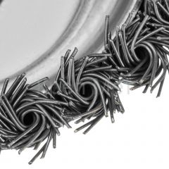 Щетка Matrix «Чашка» 74626 диаметром 150 мм, с присоединительной резьбой М14, с щетиной из крученой проволоки диаметром 0,8 мм, устанавливается на УШМ, поддерживающую работу со скоростью 4500 об/мин. Щетина предназначена для грубой (черновой) обработки поверхностей, более агрессивной по сравнению с щетиной 0,5 мм. Изделие подходит для удаления загрязнений, снятия толстого слоя ржавчины, ЛКМ, зачистки сварных швов.