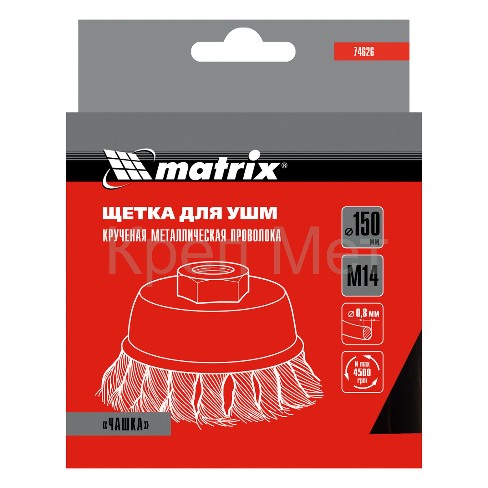 - Щетка для УШМ, 150 мм, М14, "чашка", крученая проволока 0.8 мм Matrix