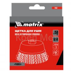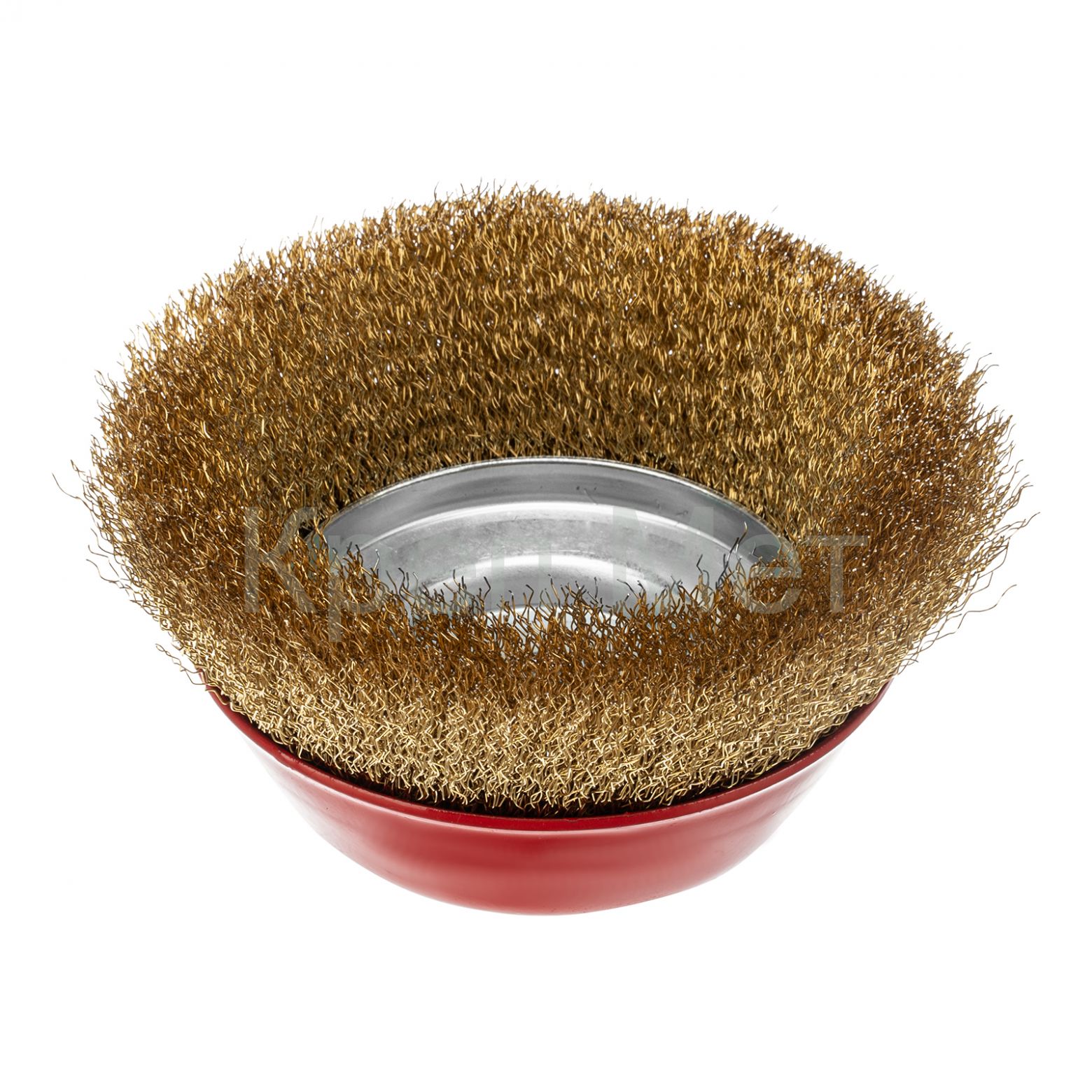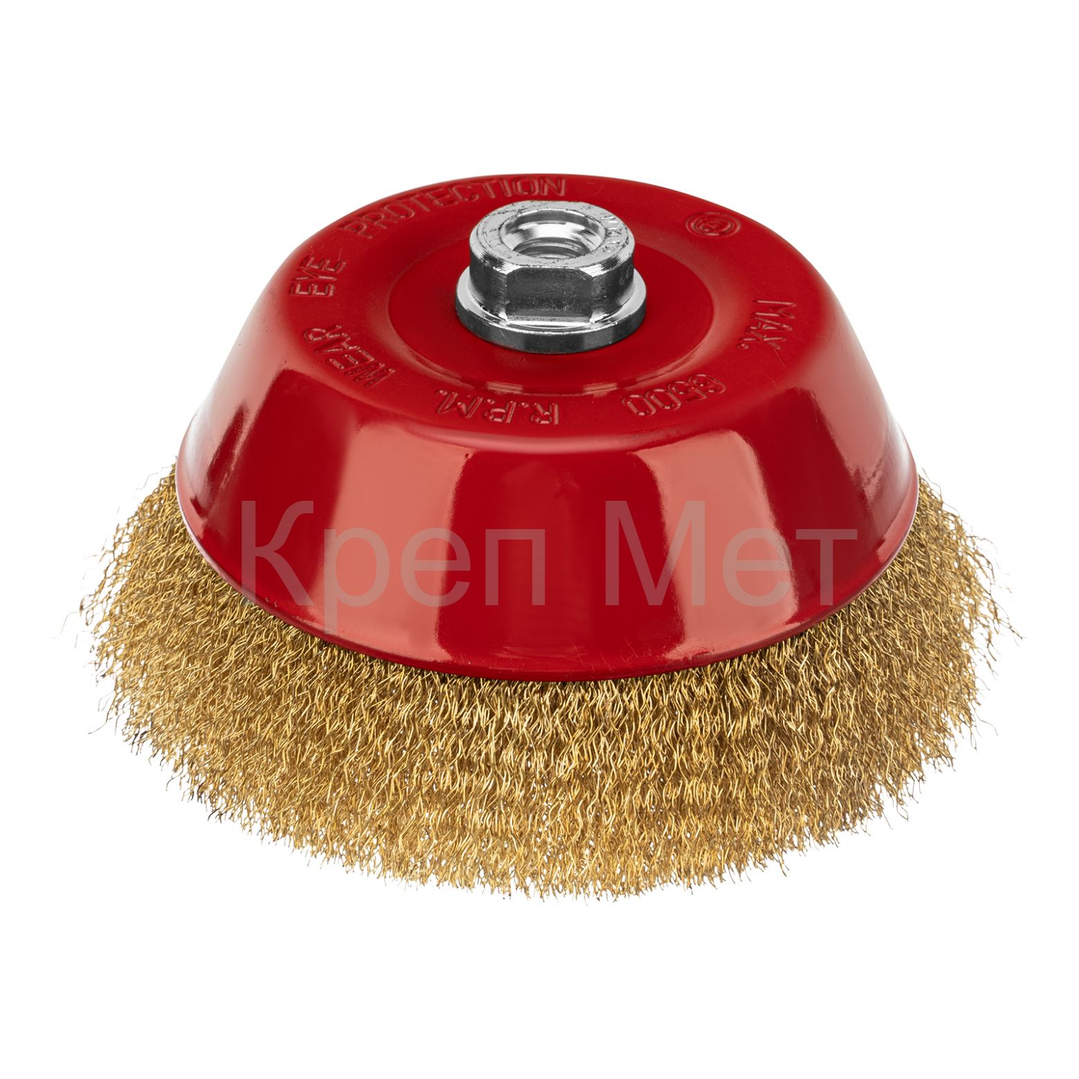 - Щетка для УШМ, 150 мм, М14, "чашка", латунированная витая проволока Matrix