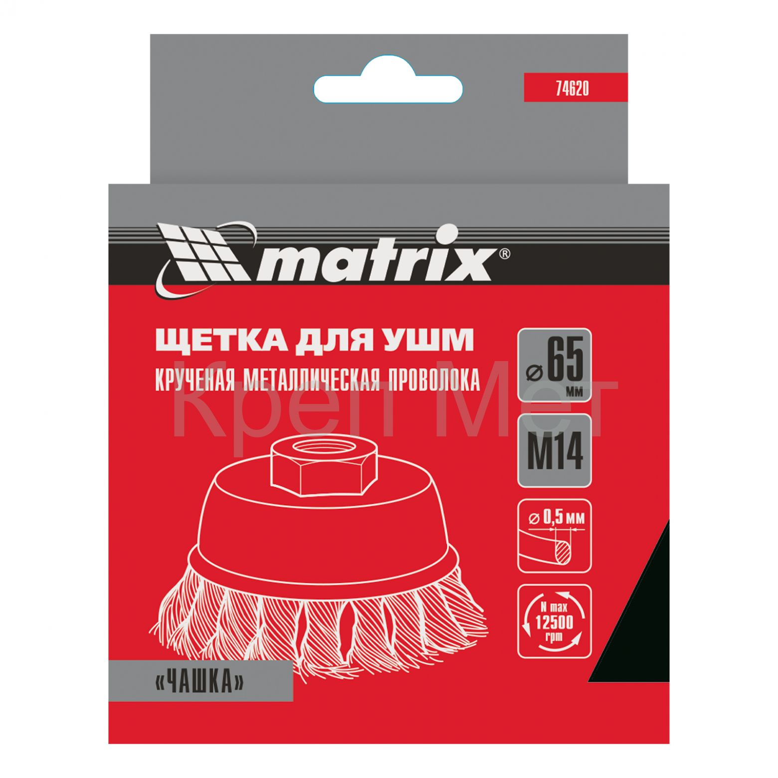 Щетка для УШМ, 65 мм, М14, "чашка", крученая проволока 0.5 мм Matrix