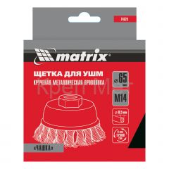 - Щетка для УШМ, 65 мм, М14, "чашка", крученая проволока 0.5 мм Matrix