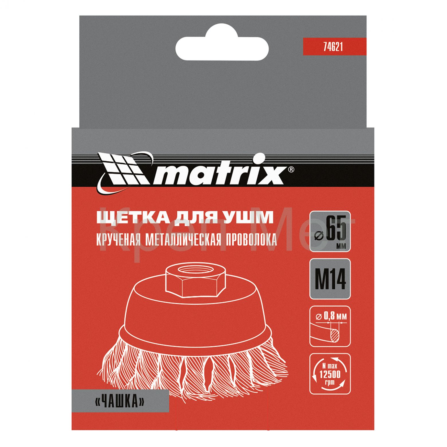 Щетка для УШМ, 65 мм, М14, "чашка", крученая проволока 0.8 мм Matrix