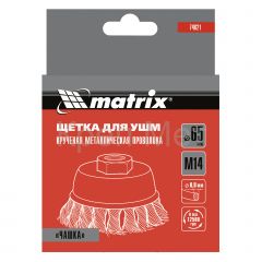 - Щетка для УШМ, 65 мм, М14, "чашка", крученая проволока 0.8 мм Matrix