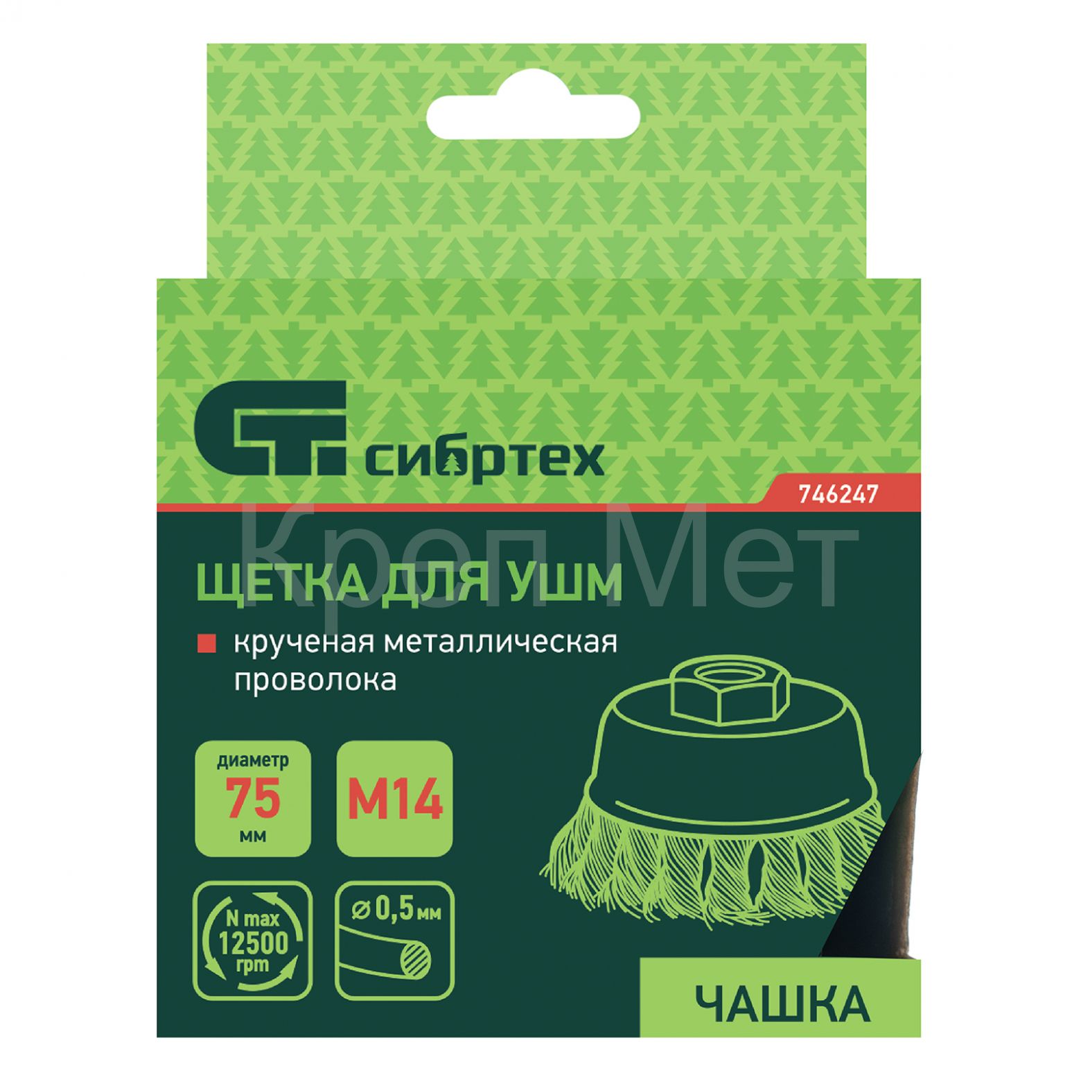 - Щетка для УШМ, 75 мм, М14, "чашка", крученая металлическая проволока Сибртех