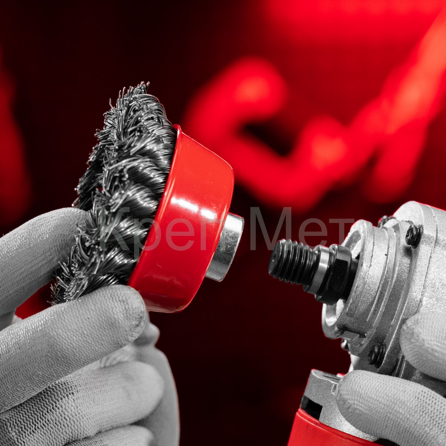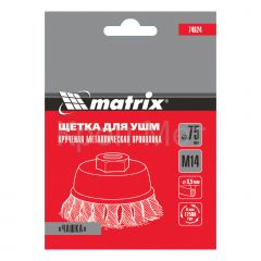 - Щетка для УШМ, 75 мм, М14, "чашка", крученая проволока 0.5 мм Matrix