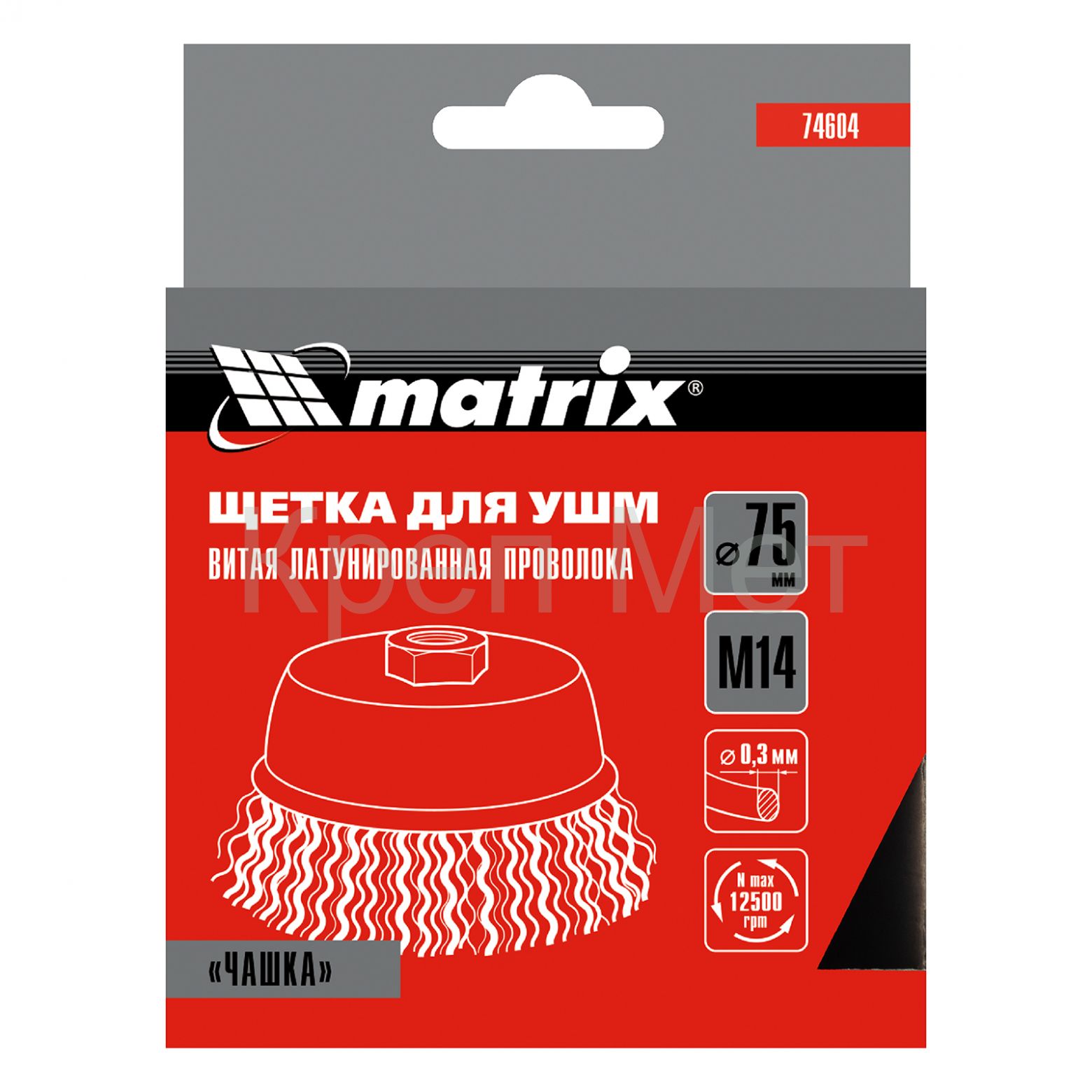 Щетка «чашка» Matrix 74604 диаметром 75 мм, с щетиной из латунированной витой проволоки, устанавливается на вал УШМ с помощью гайки М14. Предназначена для снятия тонкого слоя краски или лака, удаления ржавчины и загрязнений. При рекомендованной скорости вращения 12500 об/мин щеткой можно быстро обрабатывать участки большой площади.