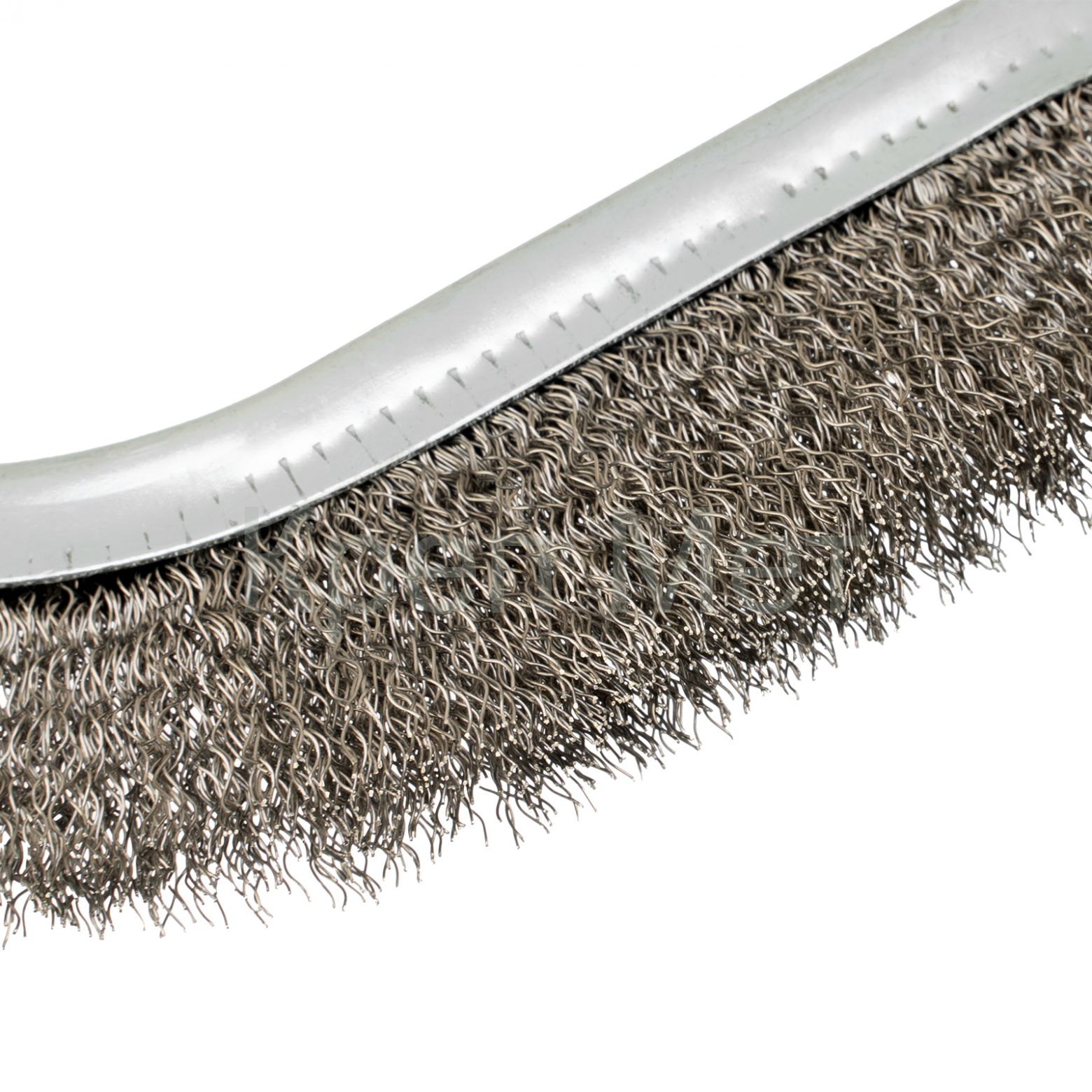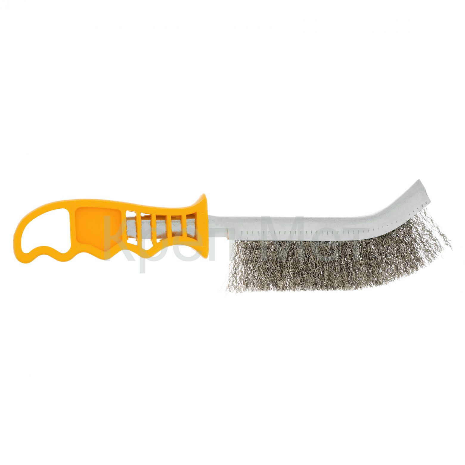 Металлическая зачистная щетка Denzel 748287 с пластмассовой рукояткой и щетиной из нержавеющей проволоки, используется для очищения металлических, деревянных и других поверхностей от ржавчины, загрязнений, остатков лакокрасочных покрытий. Щетина из нержавейки с высокой абразивной способностью обеспечивает эффективность щетки. Благодаря изогнутому корпусу щетка удобна для обработки поверхностей со сложным рельефом. Инструмент пригодится во время строительства, кузовного ремонта, а также на производстве и в быту.