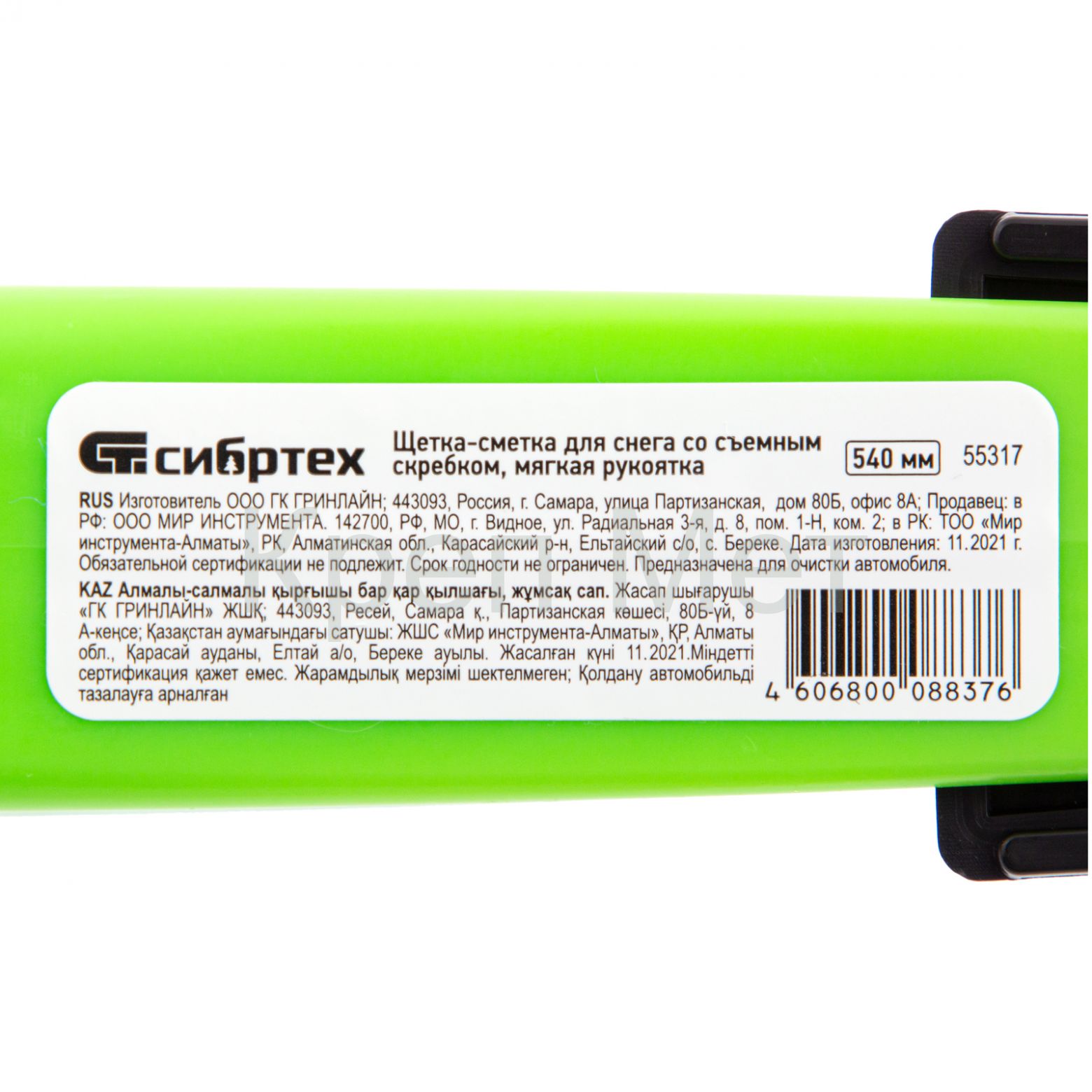- Щетка-сметка для снега со съемным скребком, мягкая рукоятка, 540 мм Сибртех