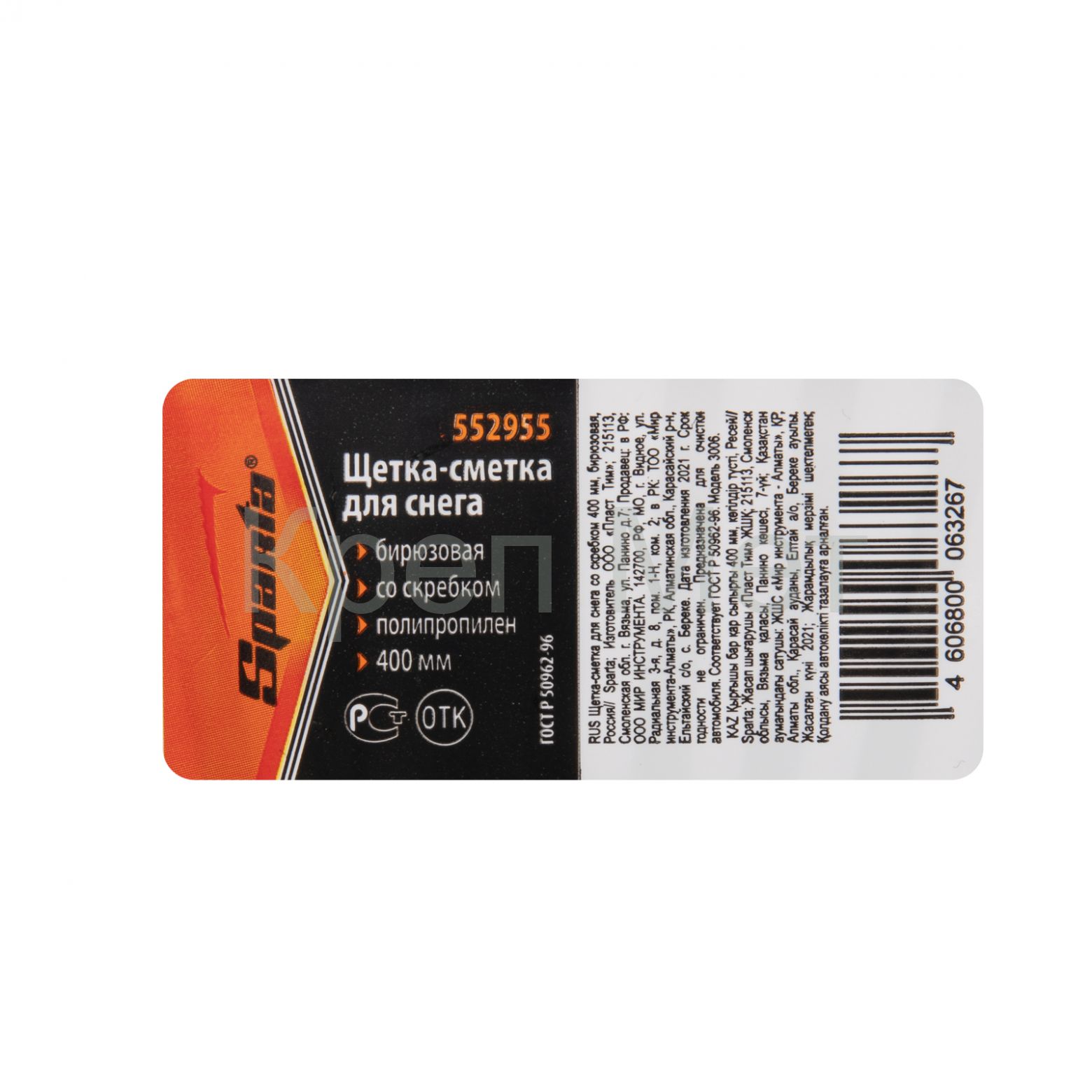 - Щетка-сметка для снега со скребком 400 мм, бирюзовая Sparta