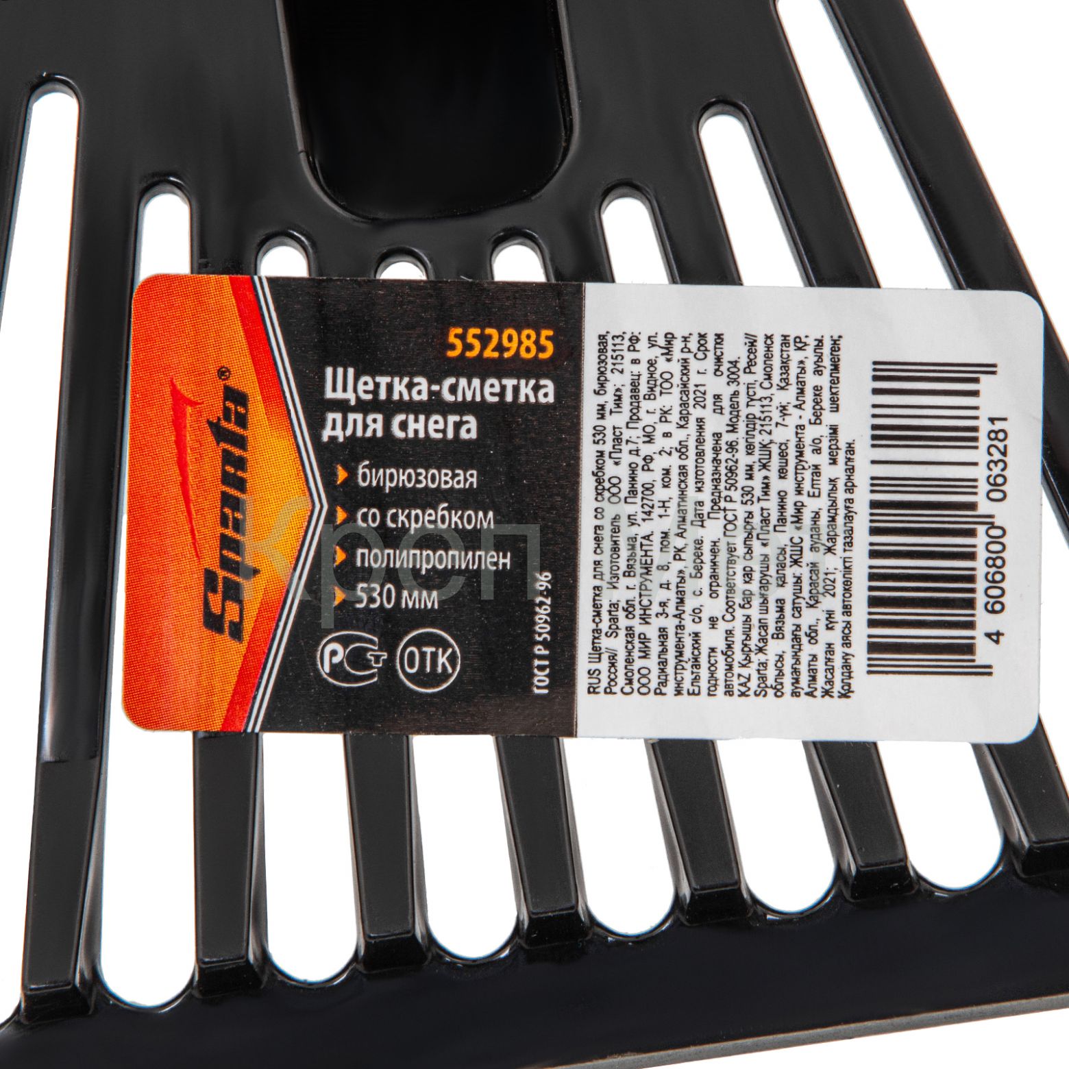 - Щетка-сметка для снега со скребком 530 мм, бирюзовая Sparta