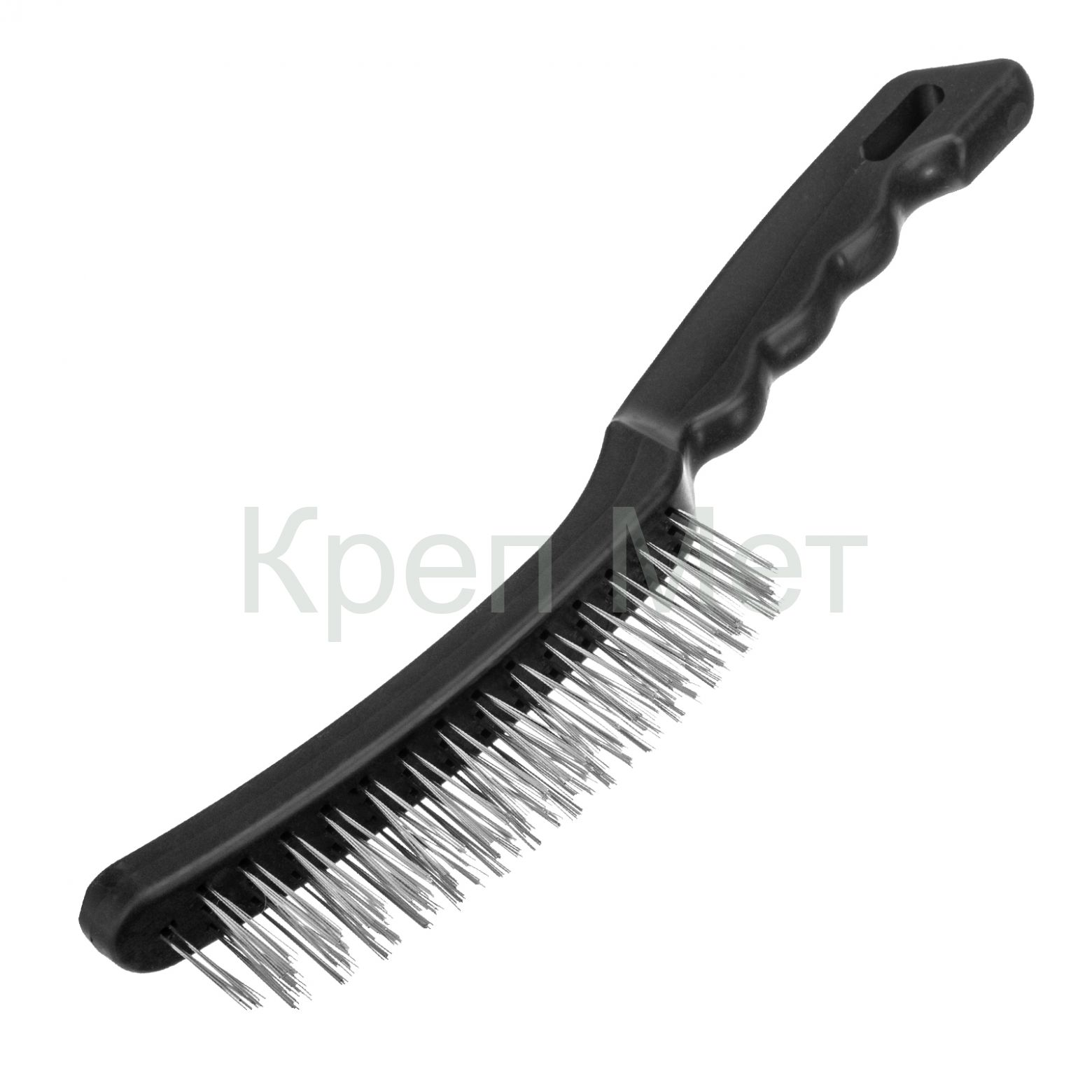 Металлическая трехрядная щетка Sparta 748655 с пластмассовой ручкой используется для обработки металлических, деревянных и других поверхностей. Удаляет загрязнения, ржавчину и старые лакокрасочные покрытия. Пучки проволоки расположены в 3 ряда, что обеспечивает эффективность зачистки. Щетина надежно закреплена в основании и не выпадает во время работы. Щетка будет полезна во время проведения строительных, ремонтных работ, а также пригодится дома или в гараже.