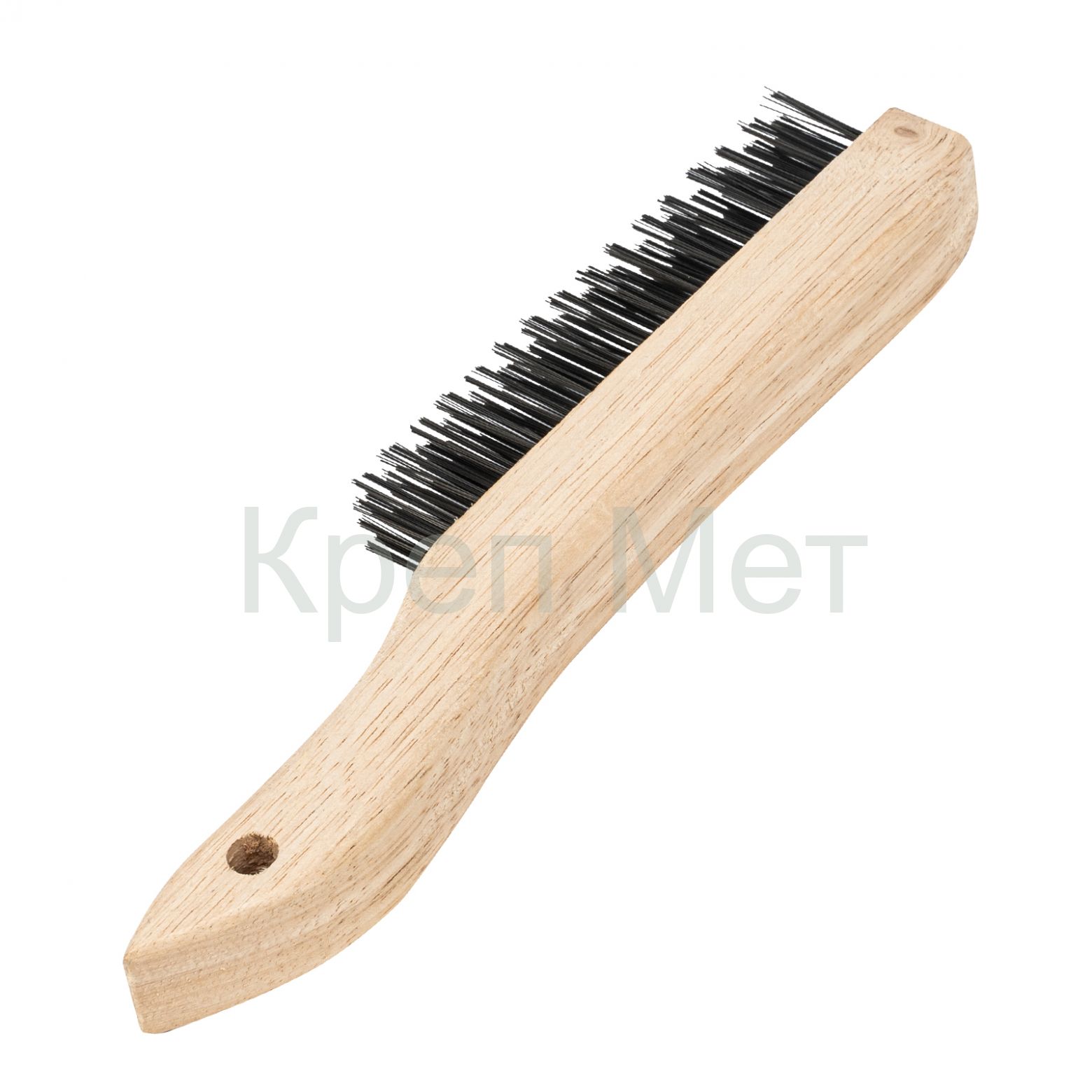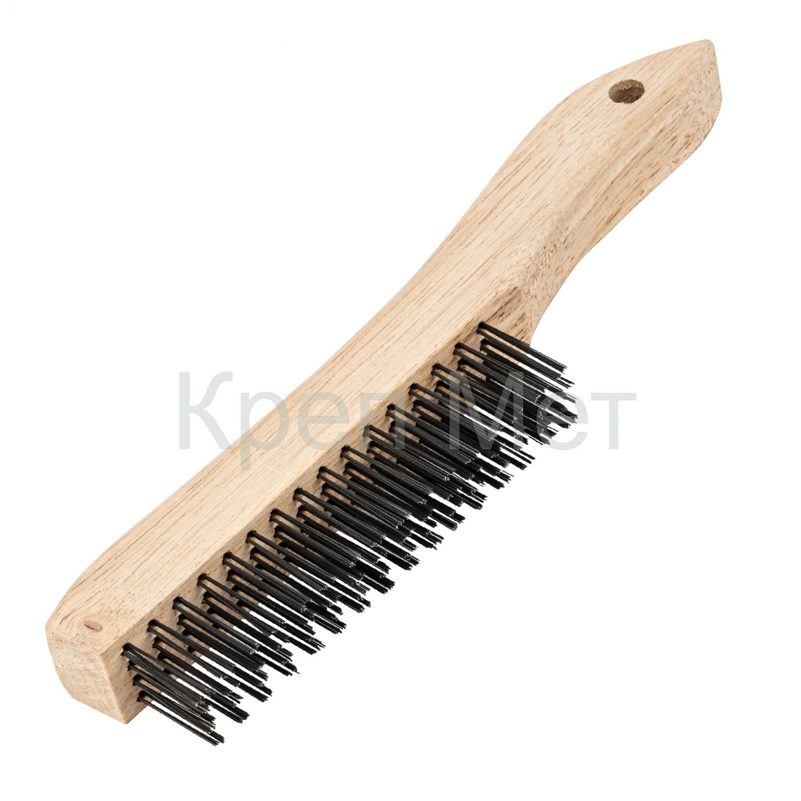 - Щетка зачистная четырехрядная, закаленная прямая проволока с деревянной ручкой Сибртех