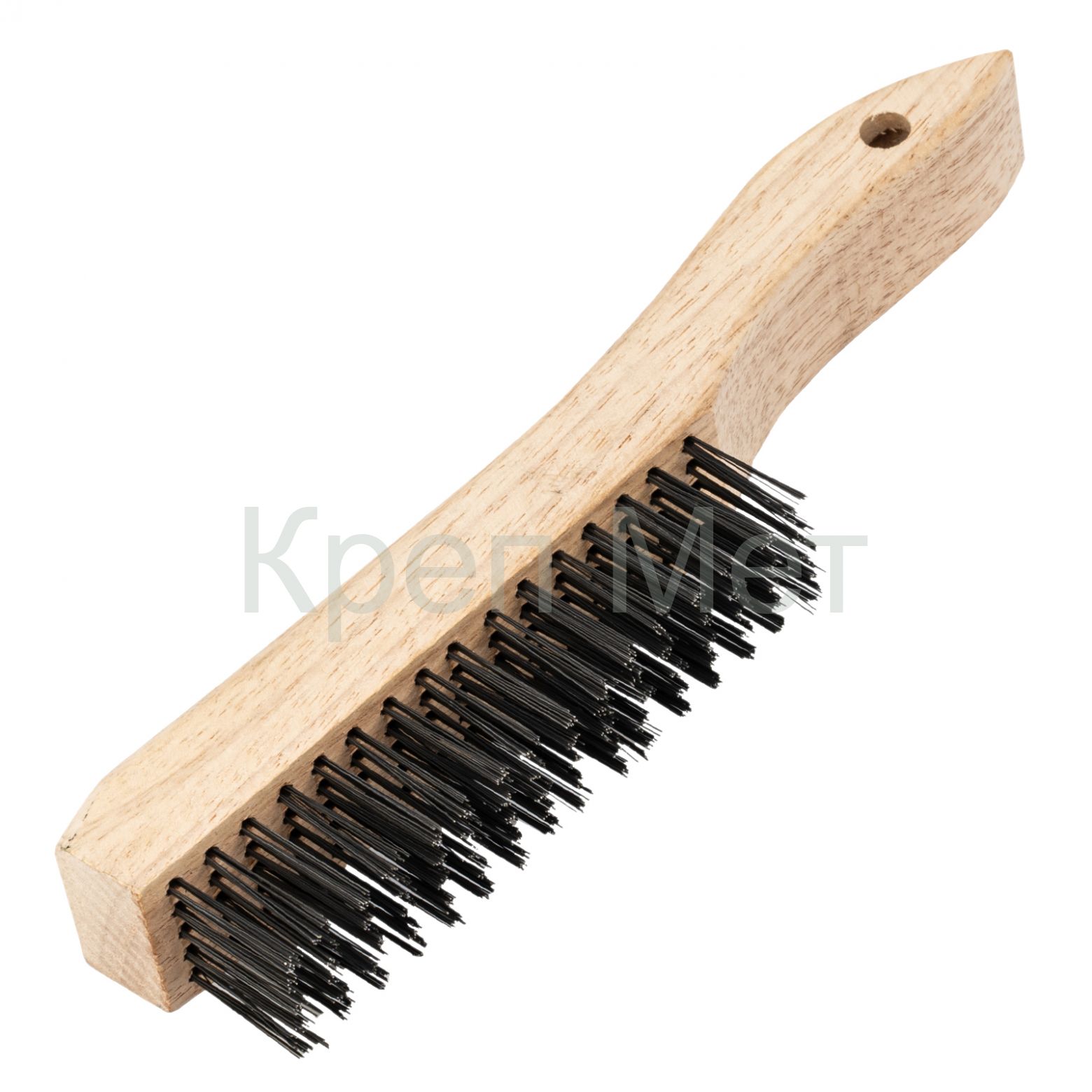 Щетка зачистная пятирядная, закаленная прямая проволока с деревянной ручкой Сибртех
