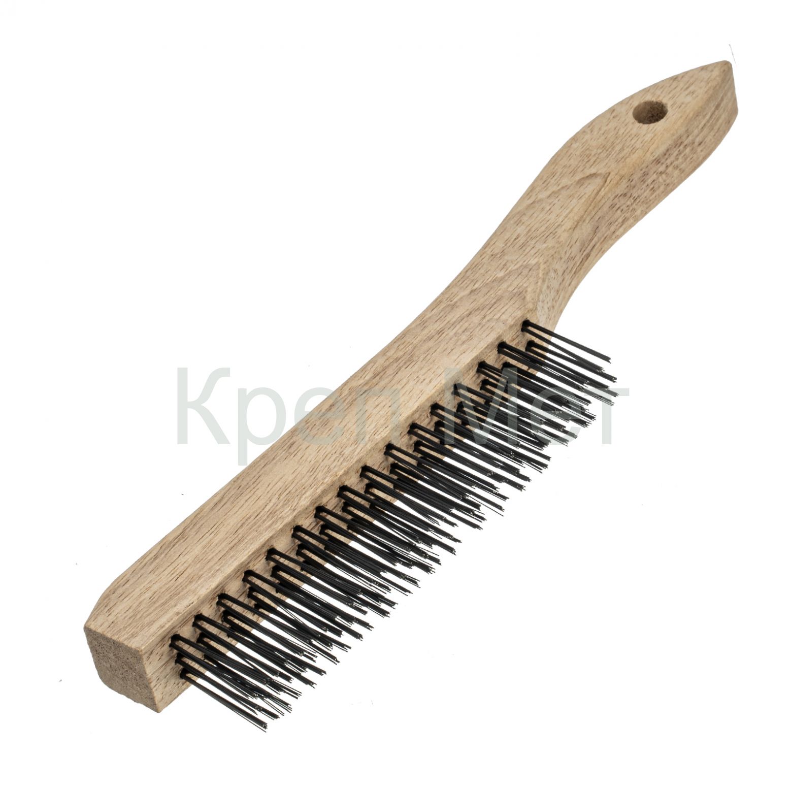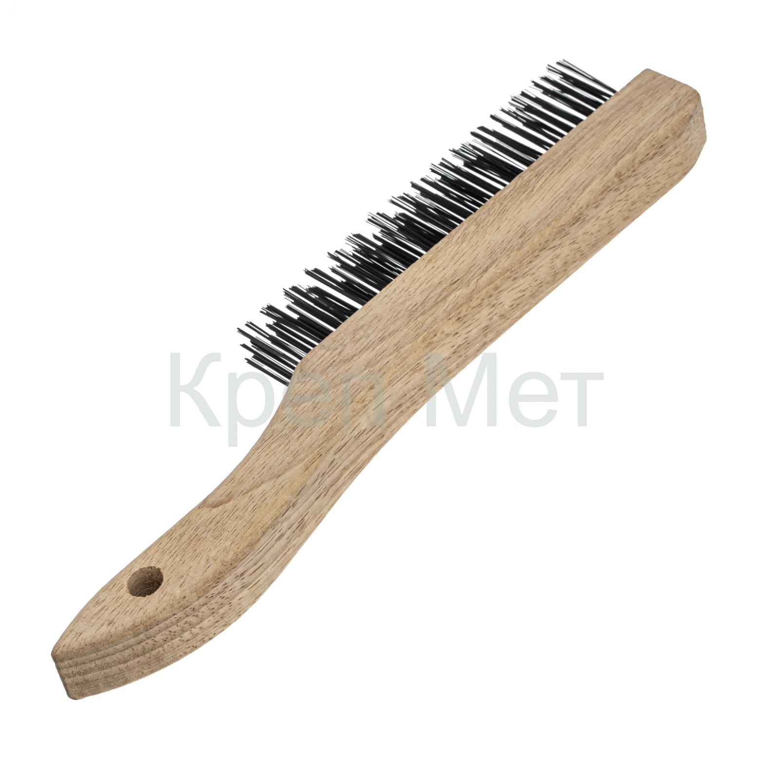 - Щетка зачистная трехрядная, закаленная прямая проволока с деревянной ручкой Сибртех