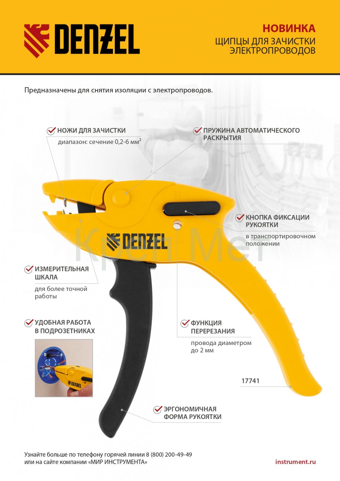 - Щипцы для зачистки электропроводов, сечением 0,2-6 мм2, функция обрезания проводов Denzel