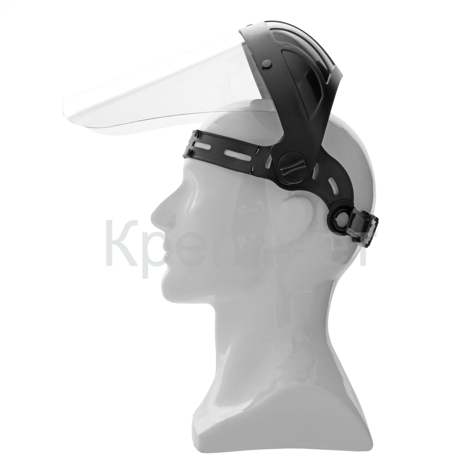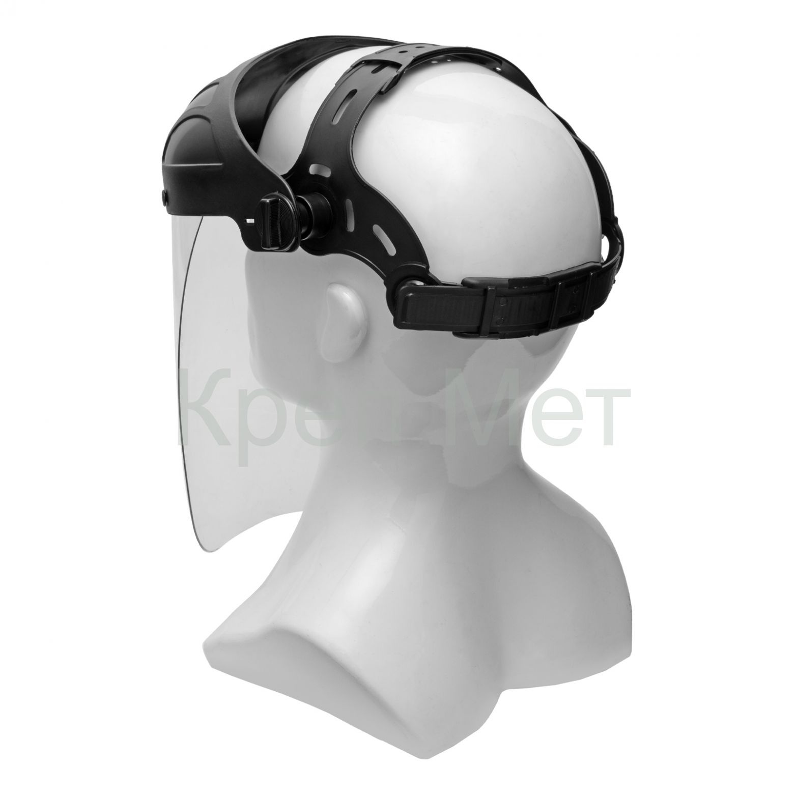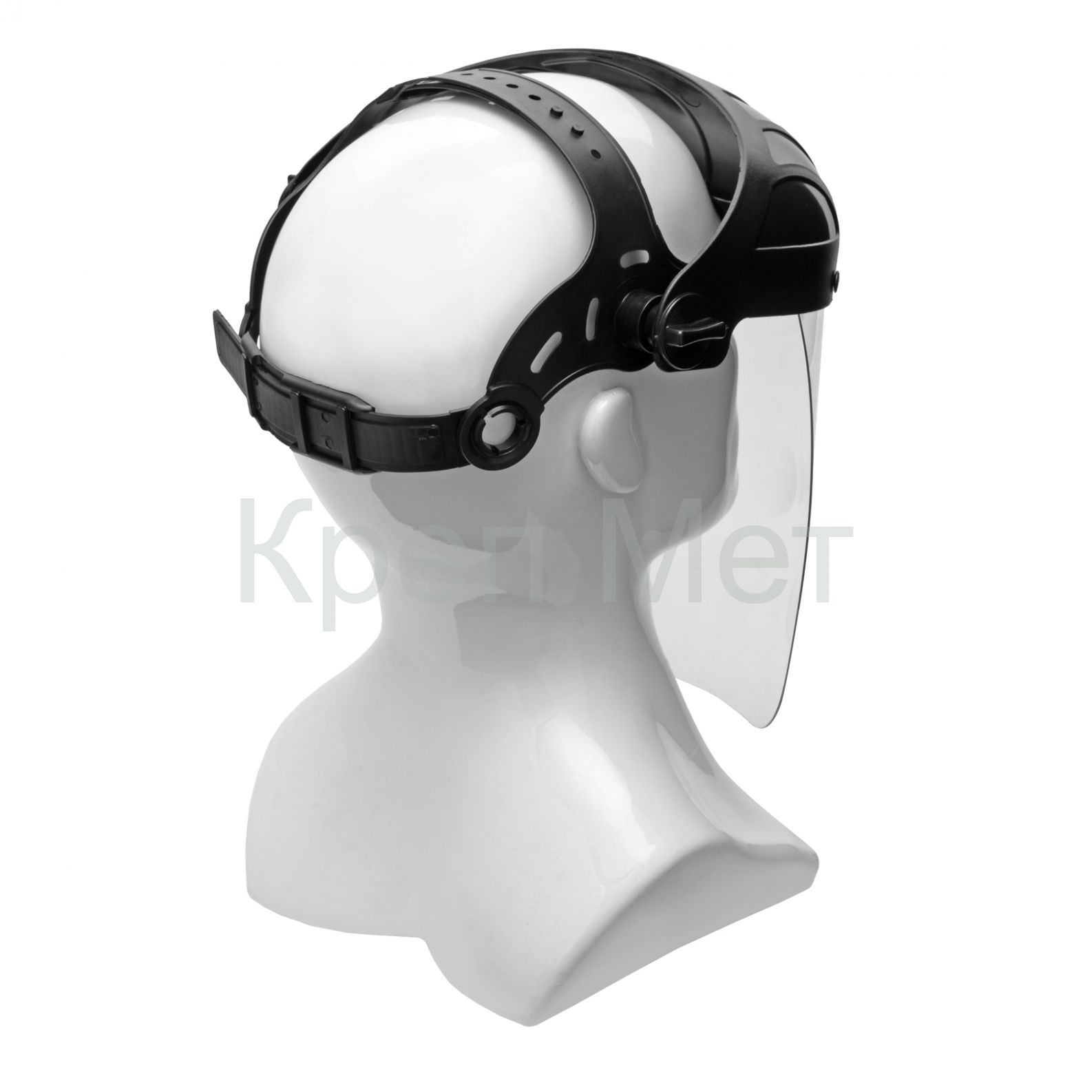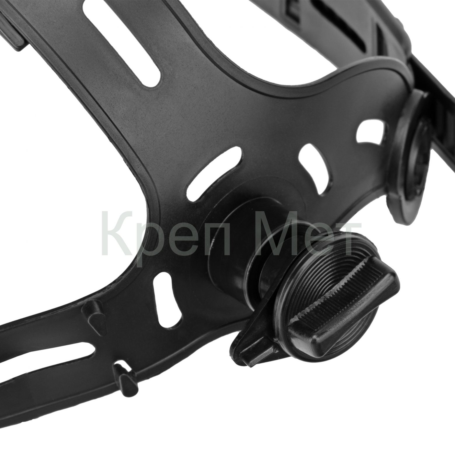 - Теменная и налобная ленты регулируются при помощи реечного механизма, обеспечивая комфортную посадку щитка даже при ношении с головным убором.