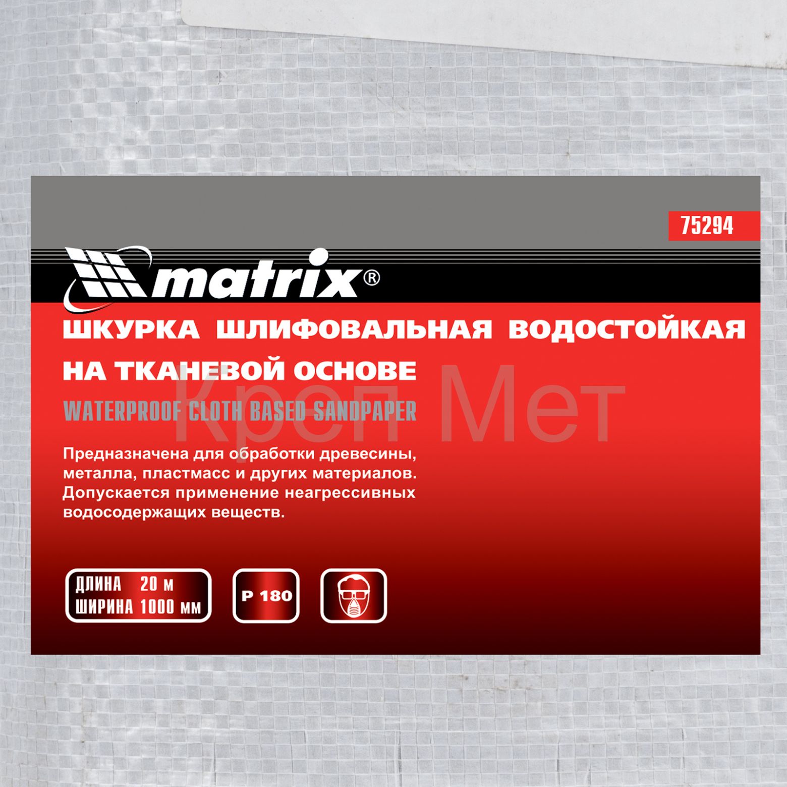 - Шкурка на тканевой основе, P 180, 1000 мм х 20 м, водостойкая Matrix