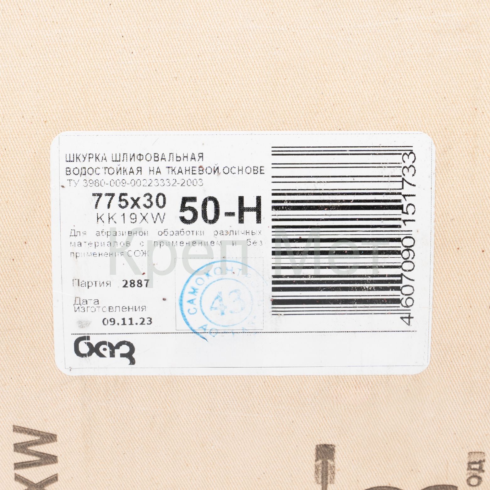 - Шкурка на тканевой основе, зернистость № 50.775 мм х 30 м, "БАЗ"