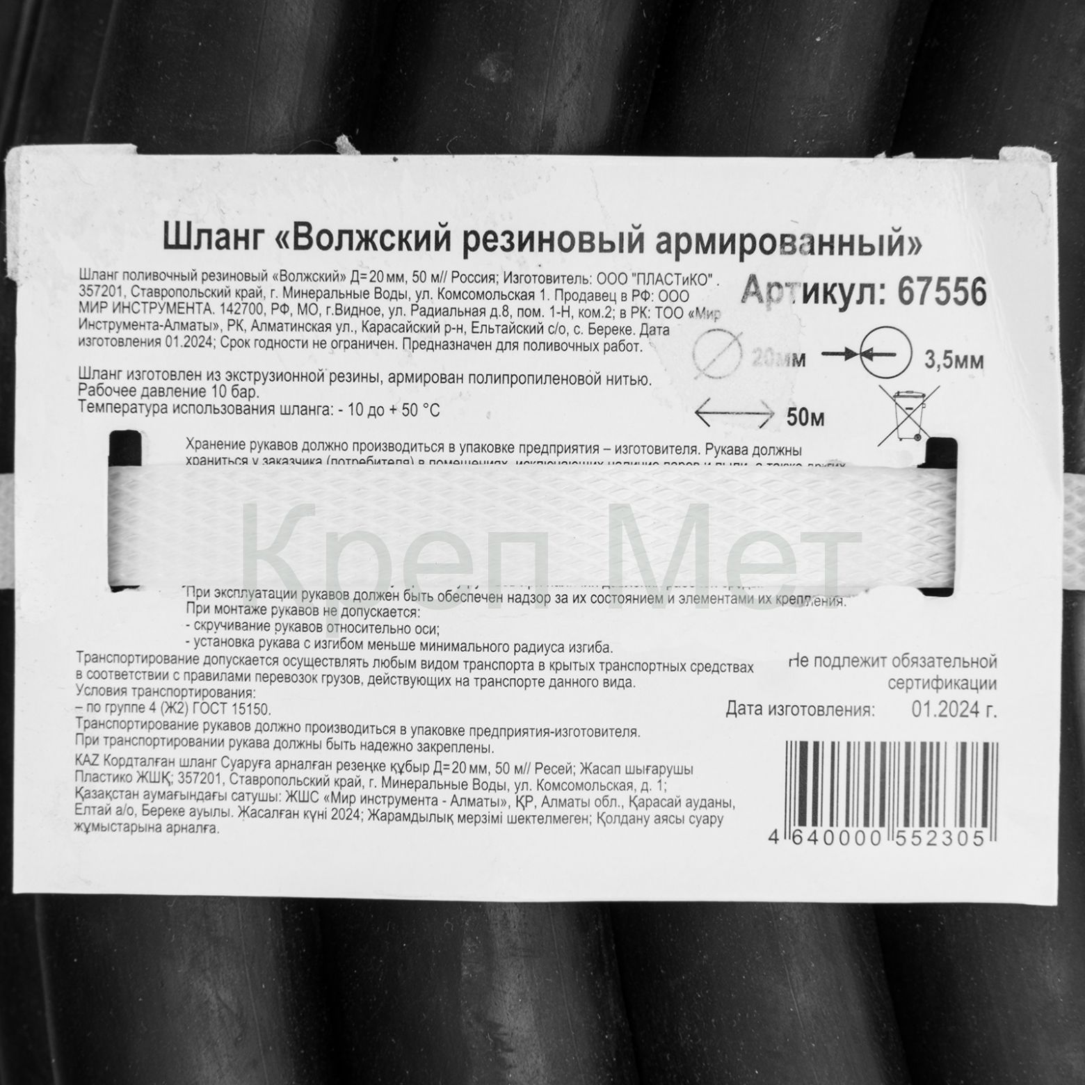 - Шланг кордовый, рукав поливочный резиновый, D 20 мм, 50 м
