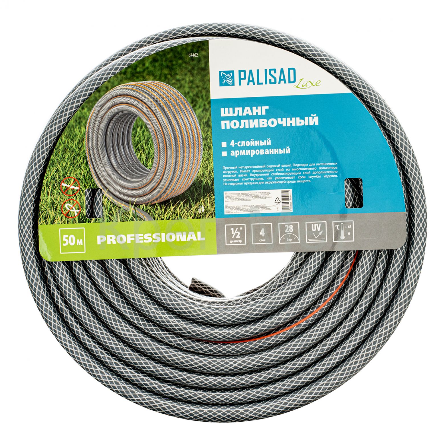 - Шланг поливочный 4-х слойный, армированный "Professional", 1/2" 50 м, Luxe Palisad