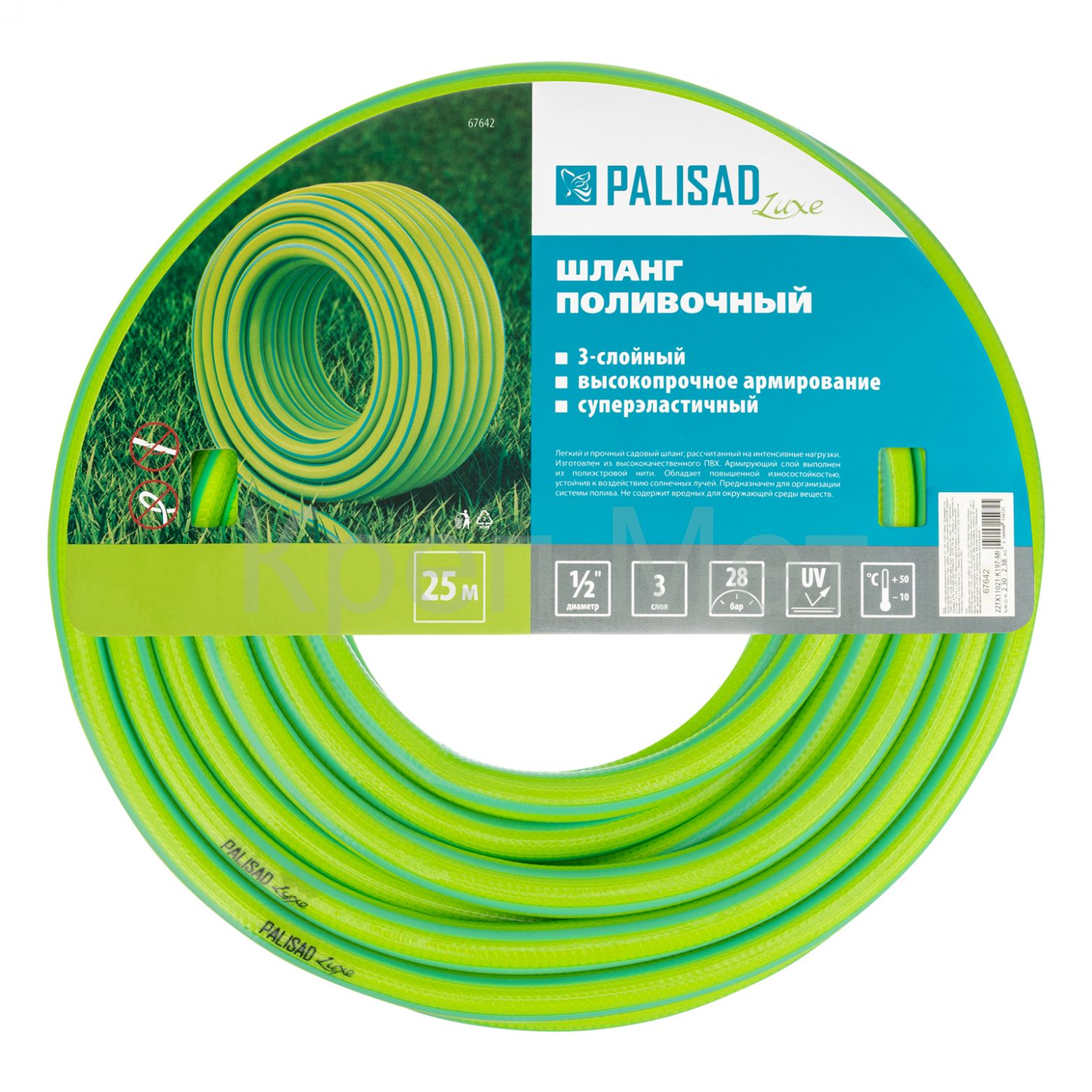 - Шланг поливочный армированный, 3-х слойный, 1/2", 25 м, Luxe Palisad