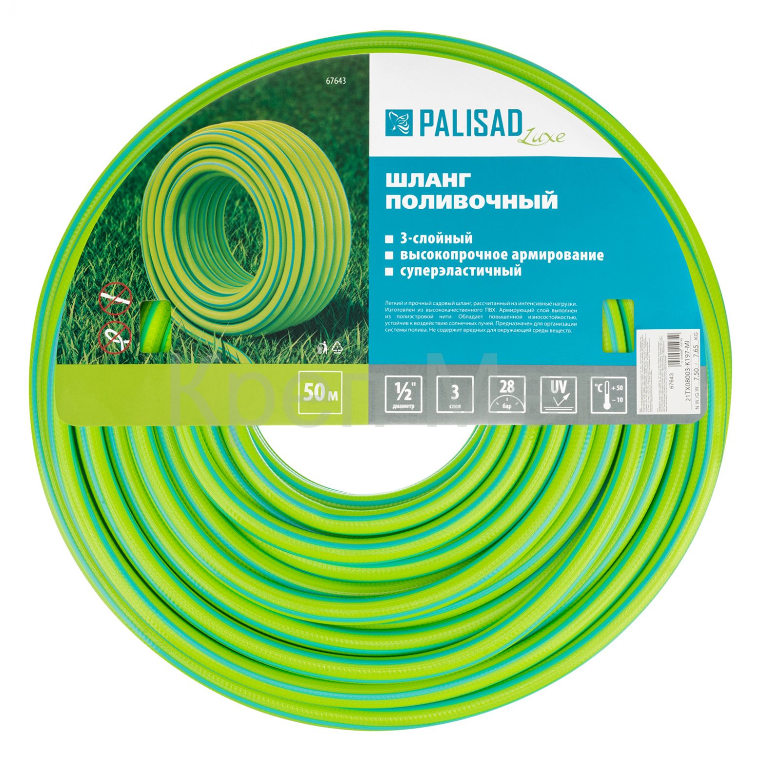 Шланг поливочный армированный 3-слойный Palisad LUXE 67643 диаметром 1/2" и длиной 50 м — незаменимый помощник для садоводов. Используется для ручного или автоматического орошения растений. Совместим со всеми поливочными системами ТМ Palisad.