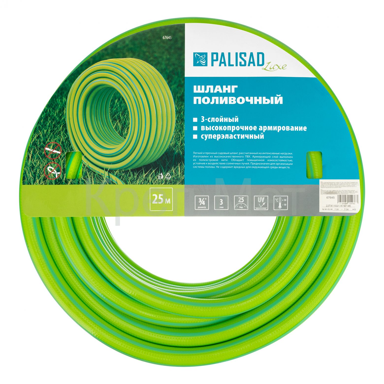 Шланг поливочный армированный 3-слойный Palisad LUXE 67645 диаметром 3/4" и длиной 25 м — незаменимый помощник для садоводов. Используется для ручного или автоматического орошения растений. Совместим со всеми поливочными системами ТМ Palisad.