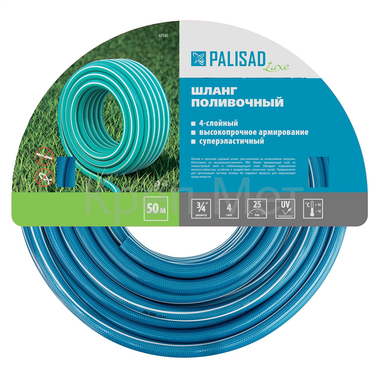 - Шланг поливочный армированный, 4-х слойный, 3/4", 50 м, Luxe Palisad
