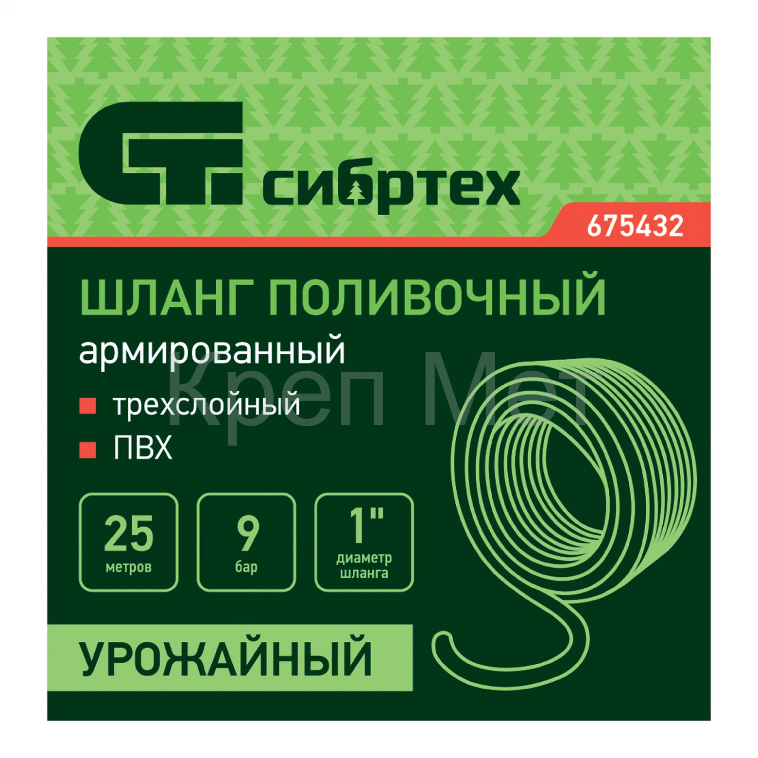 - Шланг поливочный армированный ПВХ 1", 25 м, урожайный Сибртех