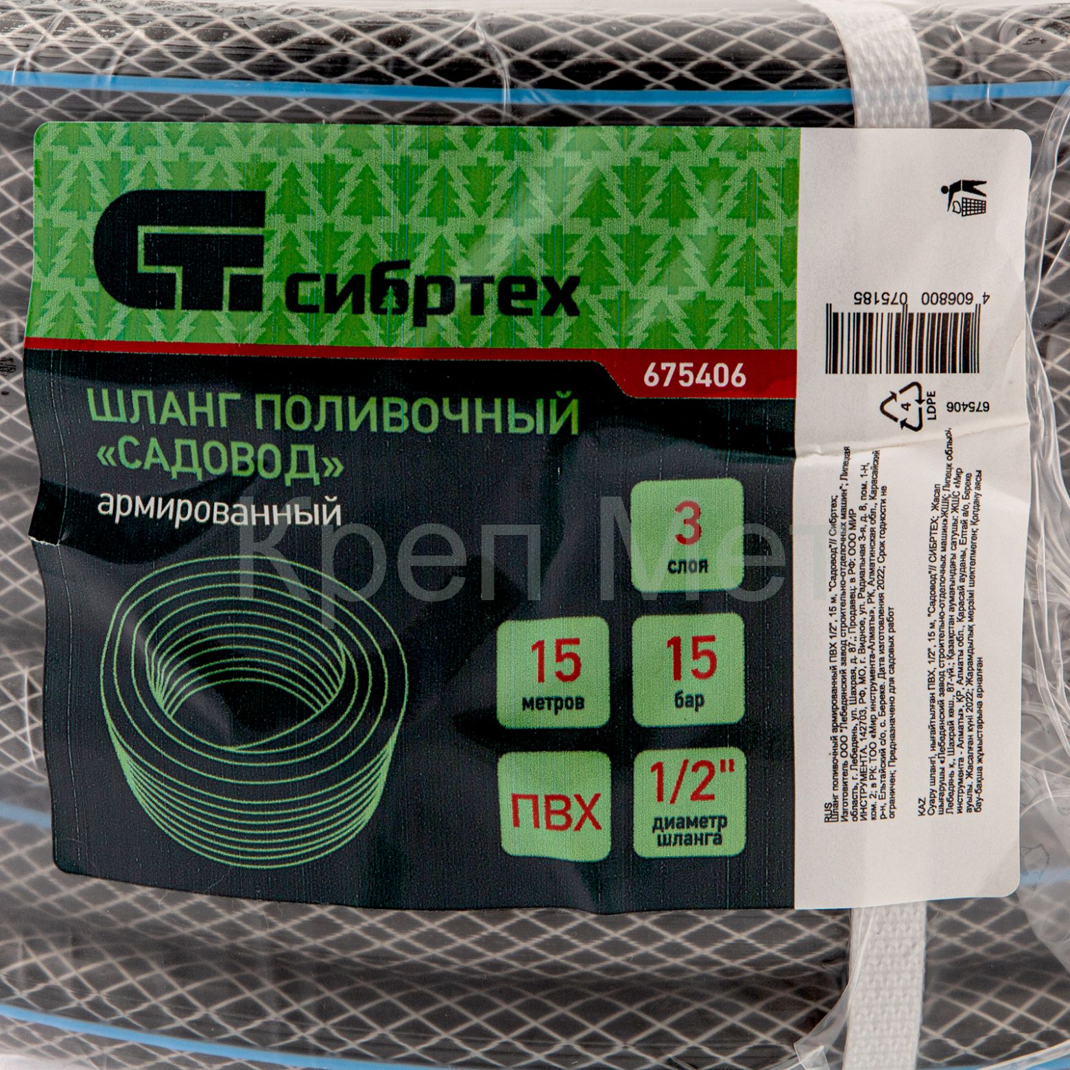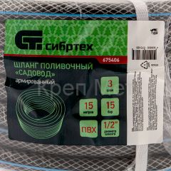 Шланг поливочный армированный ПВХ, 1/2", 15 м, "Садовод" Сибртех