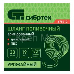 - Шланг поливочный армированный ПВХ 1/2", 30 м, урожайный Сибртех