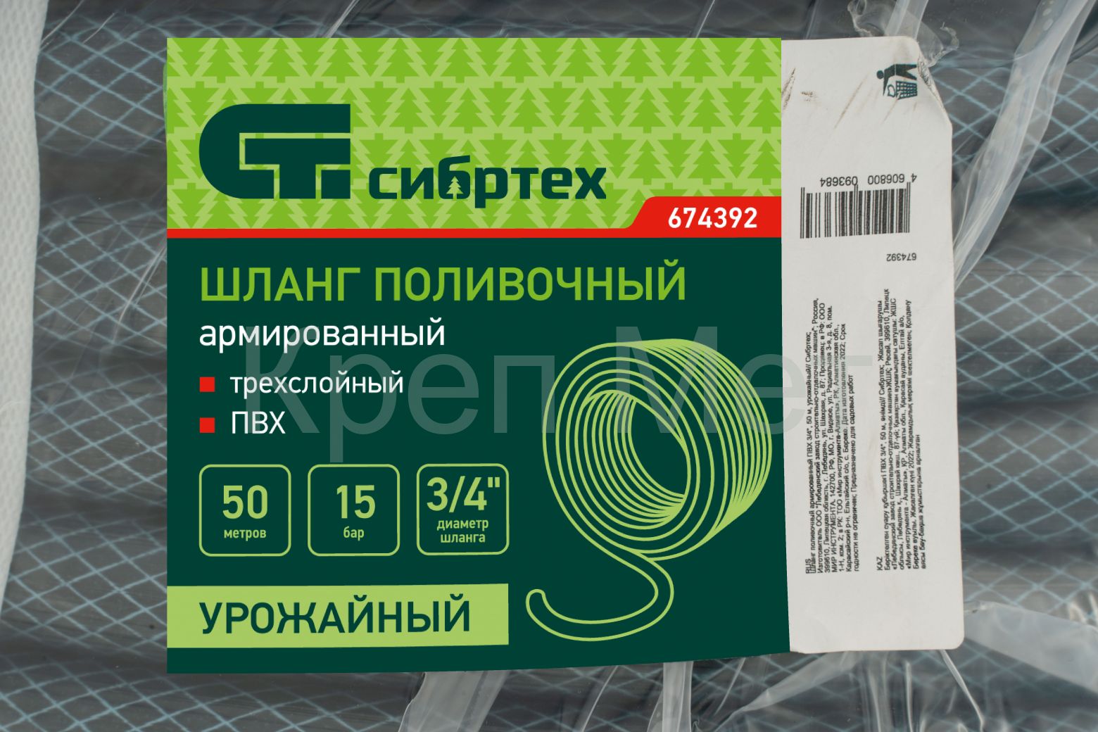 - Шланг поливочный армированный ПВХ 3/4", 50 м, урожайный Сибртех