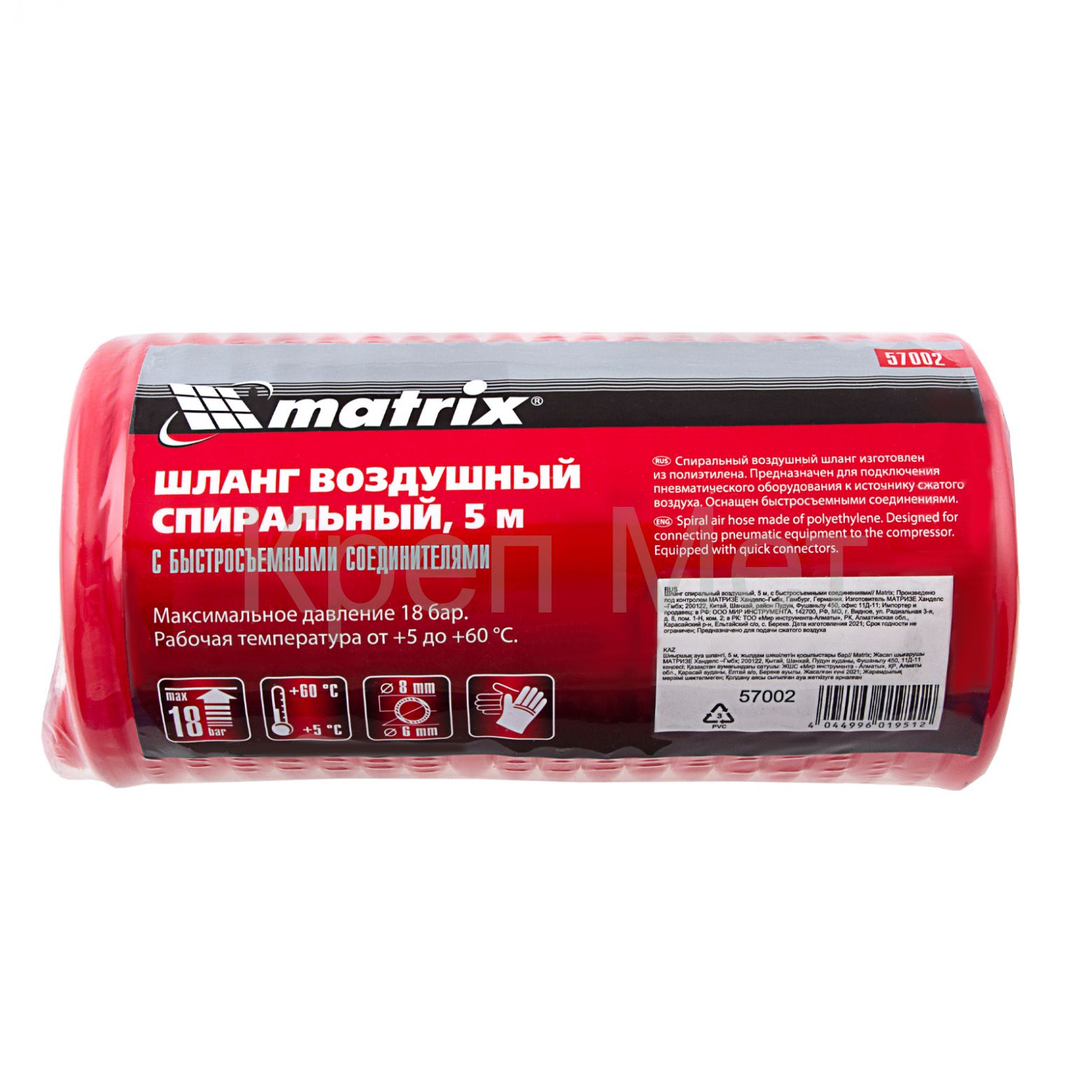 - Шланг спиральный воздушный, 5 м, с быстросъемными соединениями Matrix