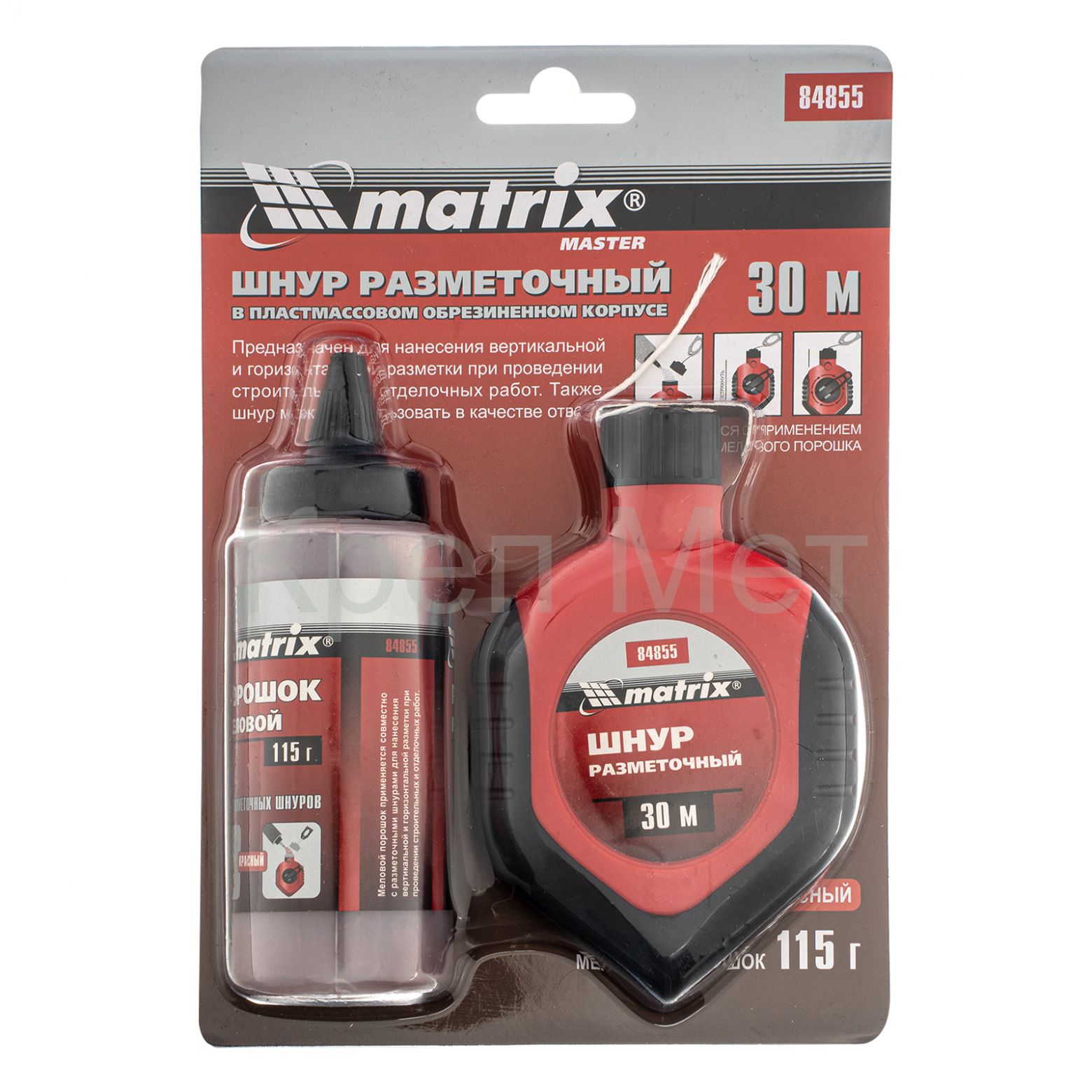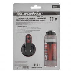 Разметочный шнур Matrix 84855 в пластмассовом обрезиненном корпусе, поставляется с красным порошком и используется для построения прямых разметочных линий на горизонтальных и вертикальных поверхностях. Используется во время проведения строительных и ремонтно-отделочных работ.