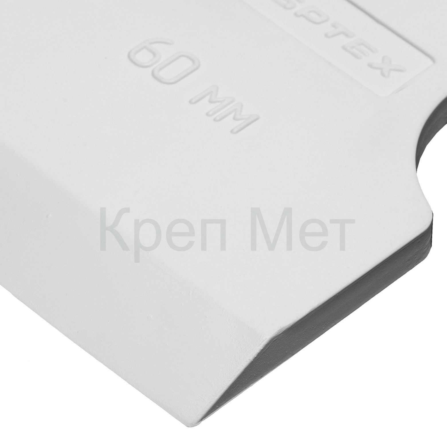 Шпатель из белой резины Сибртех 85832 шириной 60 мм предназначен для заполнения межплиточных швов затиркой. Благодаря светлой резиновой поверхности он не повреждает плитку, поэтому подходит для работы даже с эксклюзивными облицовочными материалами. За счет небольшой ширины инструмент оптимален для обработки труднодоступных участков.