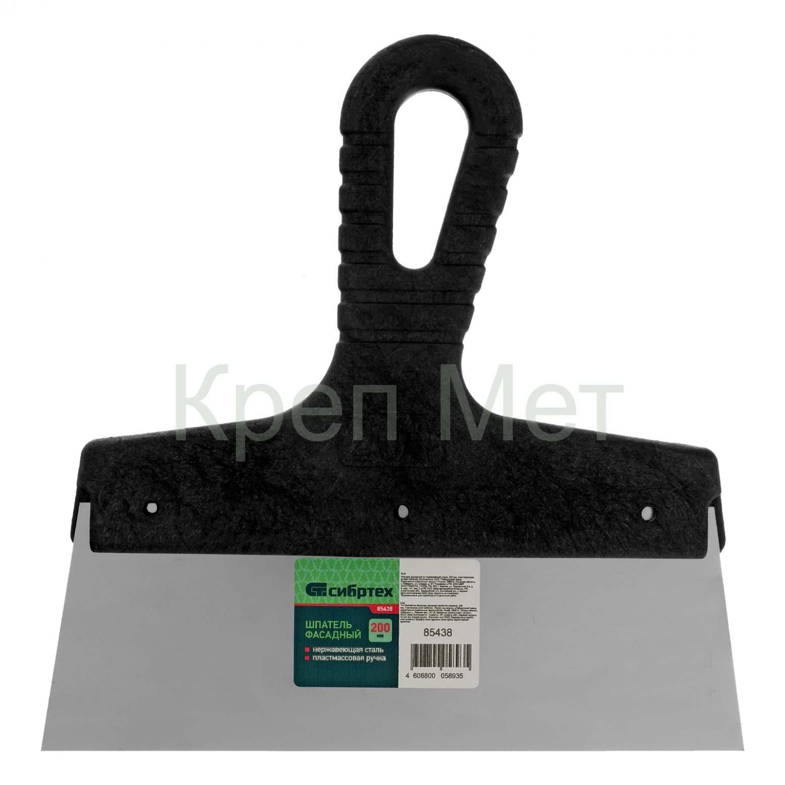 - Шпатель фасадный из нержавеющей стали, 200 мм, пластмассовая ручка Сибртех