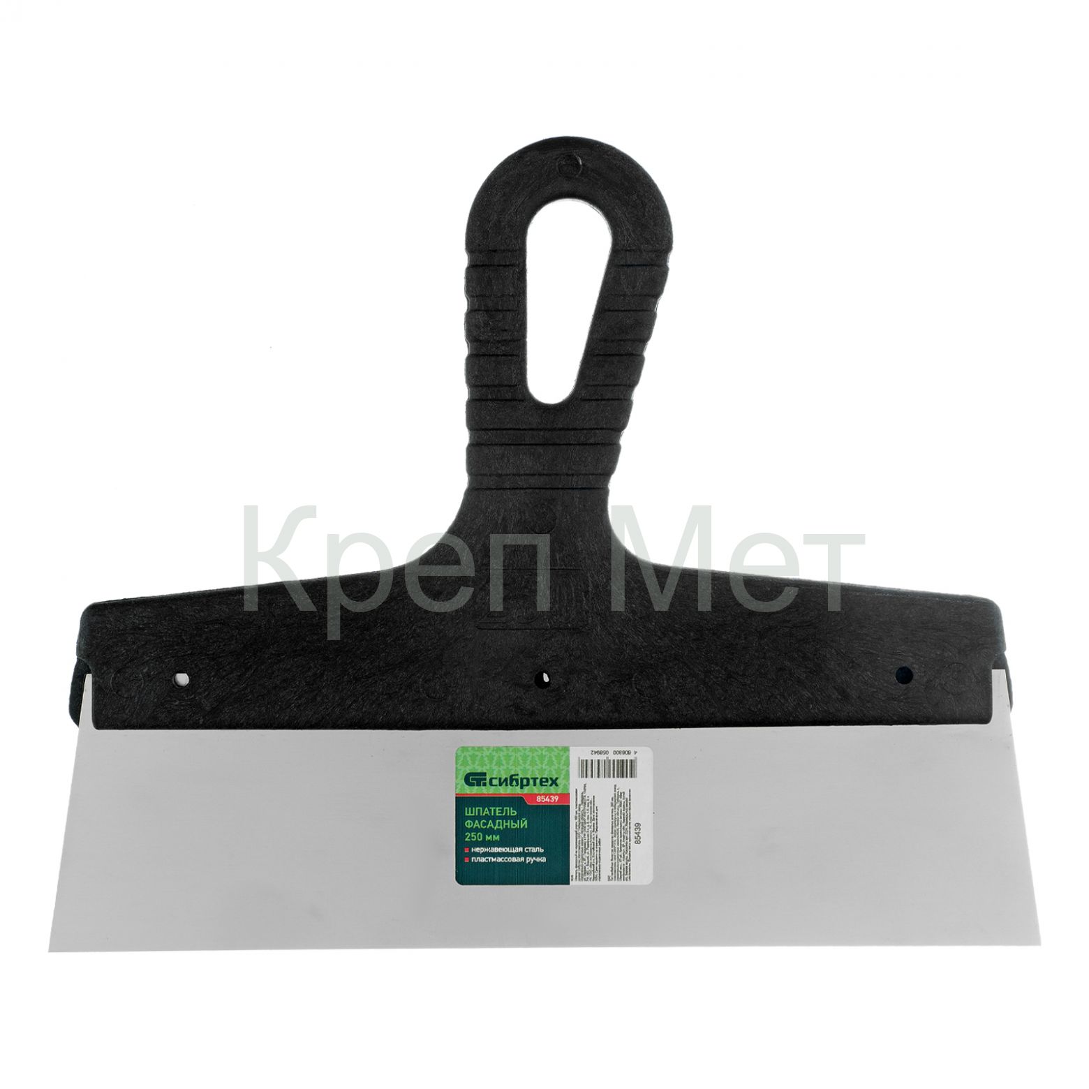 - Шпатель фасадный из нержавеющей стали, 250 мм, пластмассовая ручка Сибртех