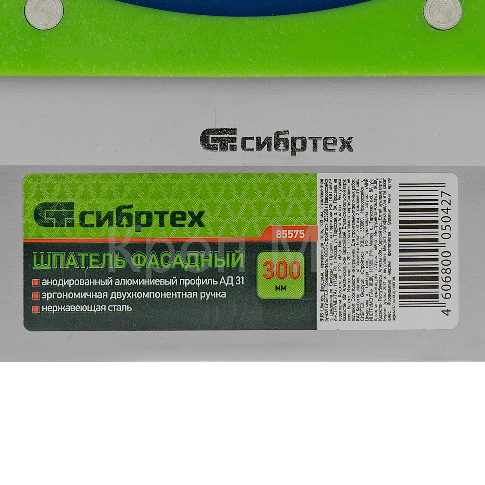 - Шпатель фасадный, нержавеющая сталь, 300 мм, двухкомпонентная ручка Сибртех