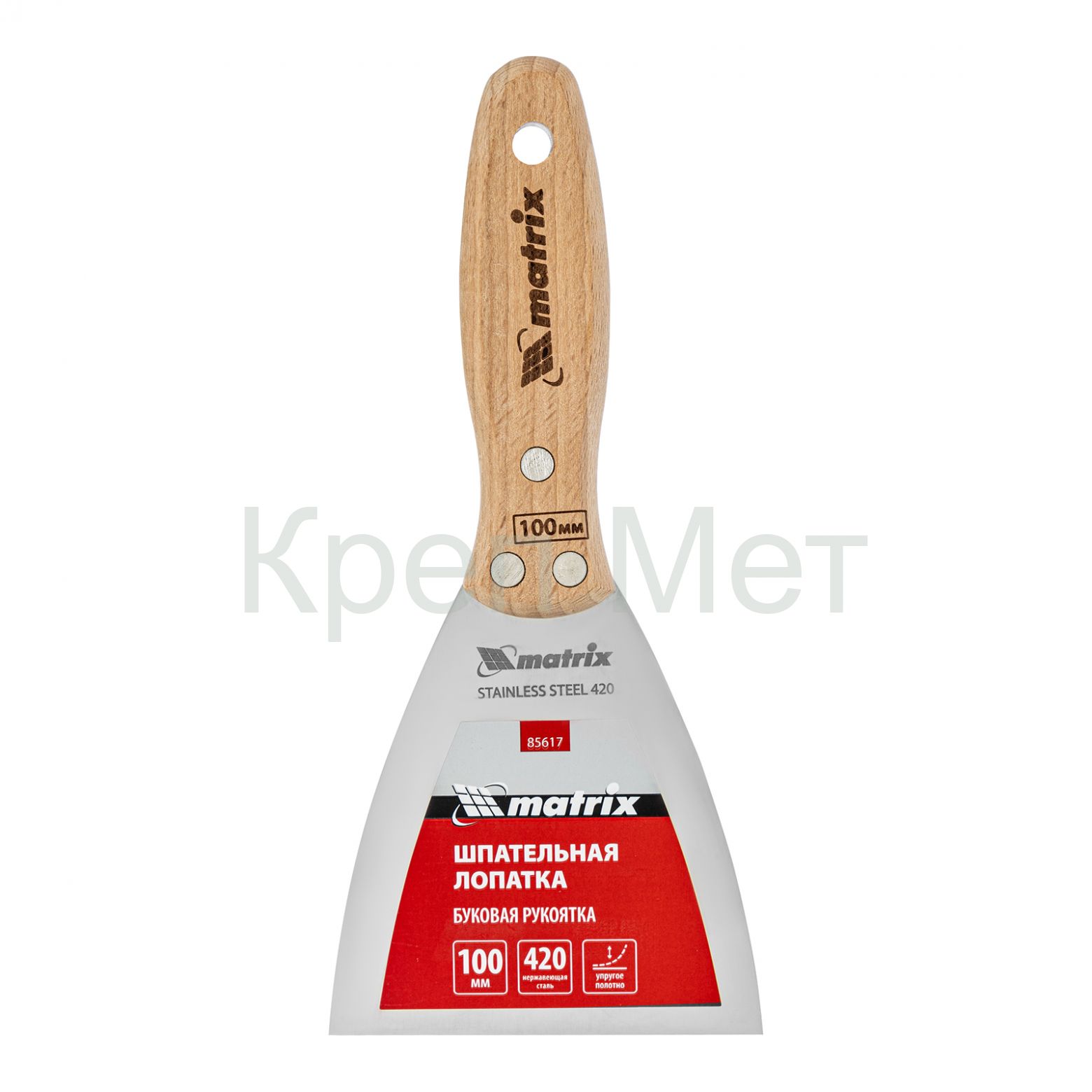 Шпательная лопатка Matrix 85617 с полотном из нержавеющей стали шириной 100 мм и буковой рукояткой предназначена для работы со строительными растворами. Применяется для нанесения различных смесей на поверхности, шпатлевания трещин и неровностей.