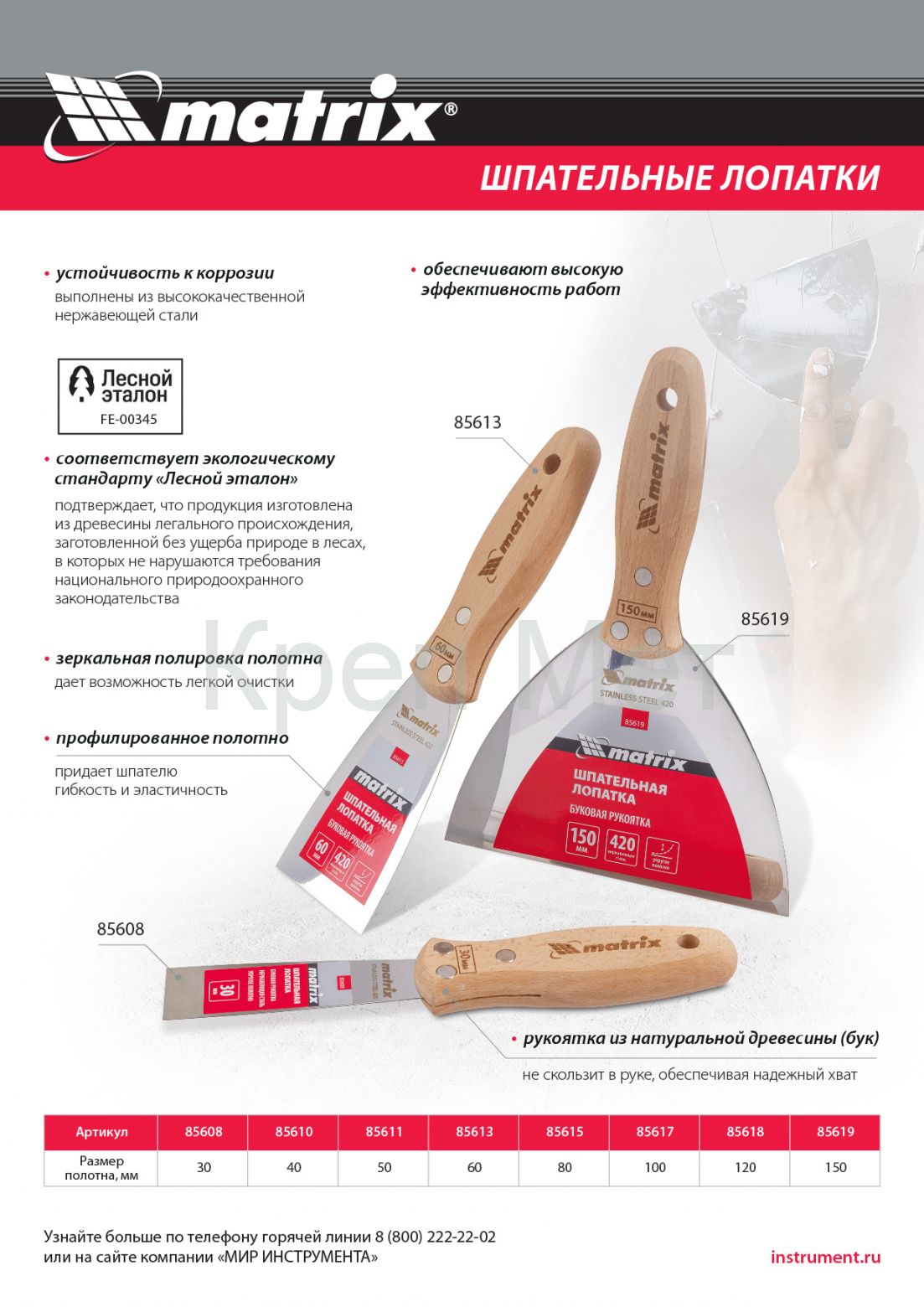 - Экологичность — наличие сертификата «Лесной эталон» подтверждает, что для изготовления инструмента использована древесина легального происхождения, заготовленная без ущерба природе, из лесов, в которых не нарушаются требования национального природоохранного законодательства.