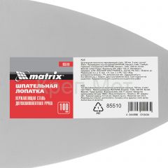 Шпательная лопатка из нержавеющей стали Matrix 85510 шириной 100 мм, с двухкомпонентной рукояткой, предназначена для нанесения и выравнивания строительных смесей, шпаклевания швов, заполнения трещин, удаления старых обоев. За счет компактных размеров инструмент подходит для корректировки мелких трещин и неровностей.