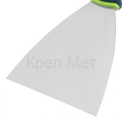 Шпательная лопатка из нержавеющей стали Сибртех 85526 шириной 100 мм, с двухкомпонентной рукояткой, облегчает проведение ремонтно-отделочных работ. Позволяет наносить и разравнивать строительные смеси, шпаклевать швы, заполнять трещины, удалять старые обои и выполнять работы в труднодоступных местах.