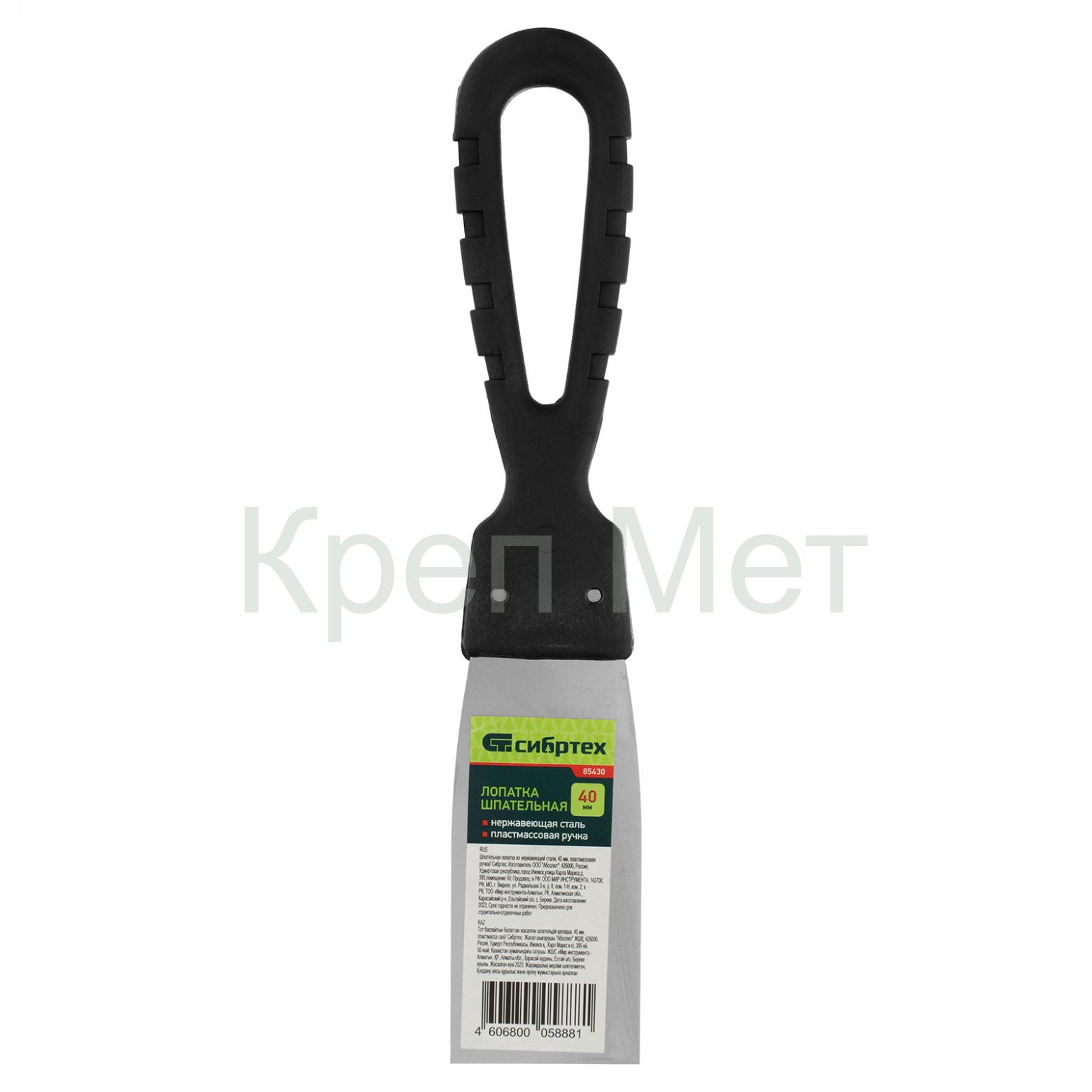 - Шпательная лопатка из нержавеющей стали, 40 мм, пластмассовая ручка Сибртех
