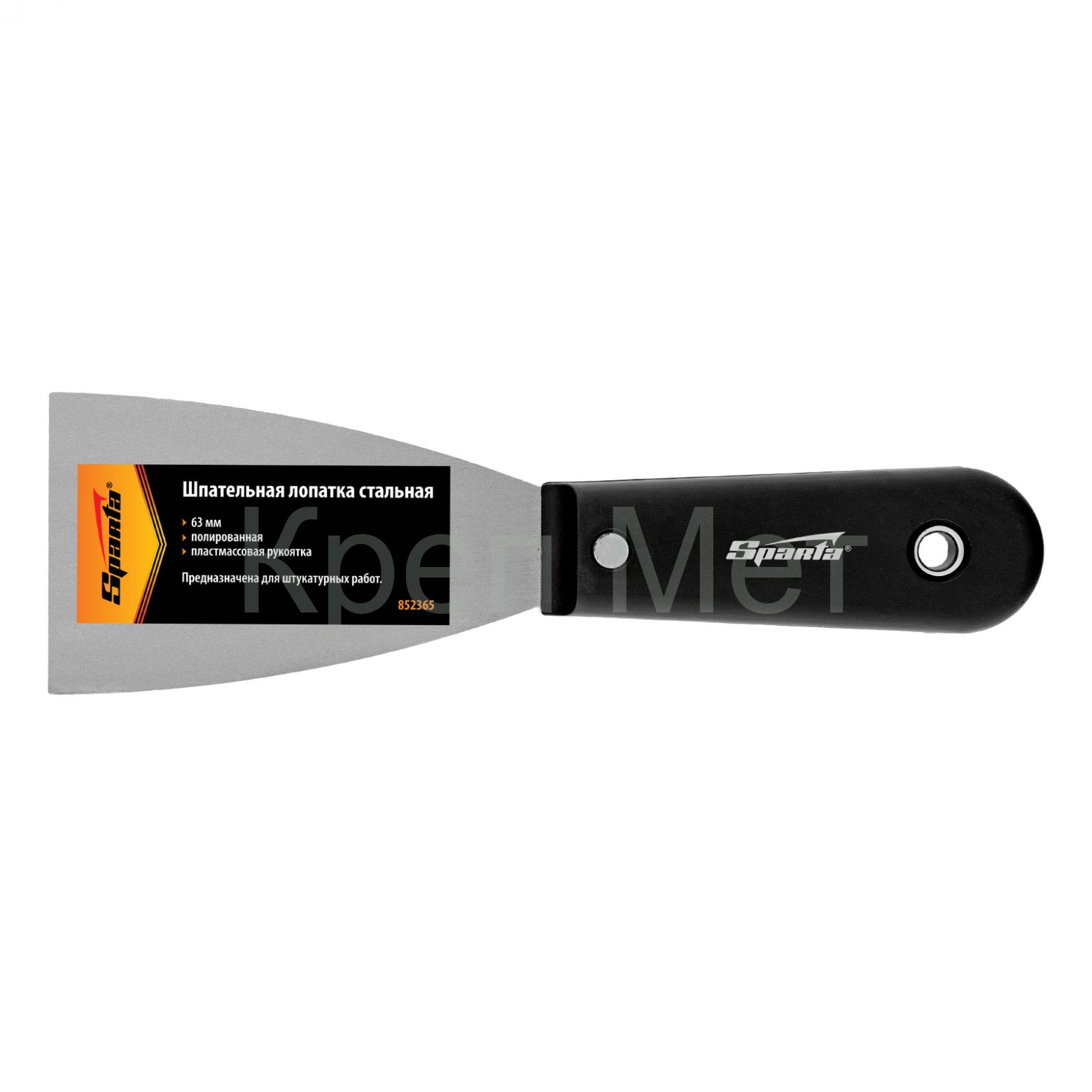 Шпательная лопатка стальная, 63 мм, полированная, пластмассовая ручка Sparta